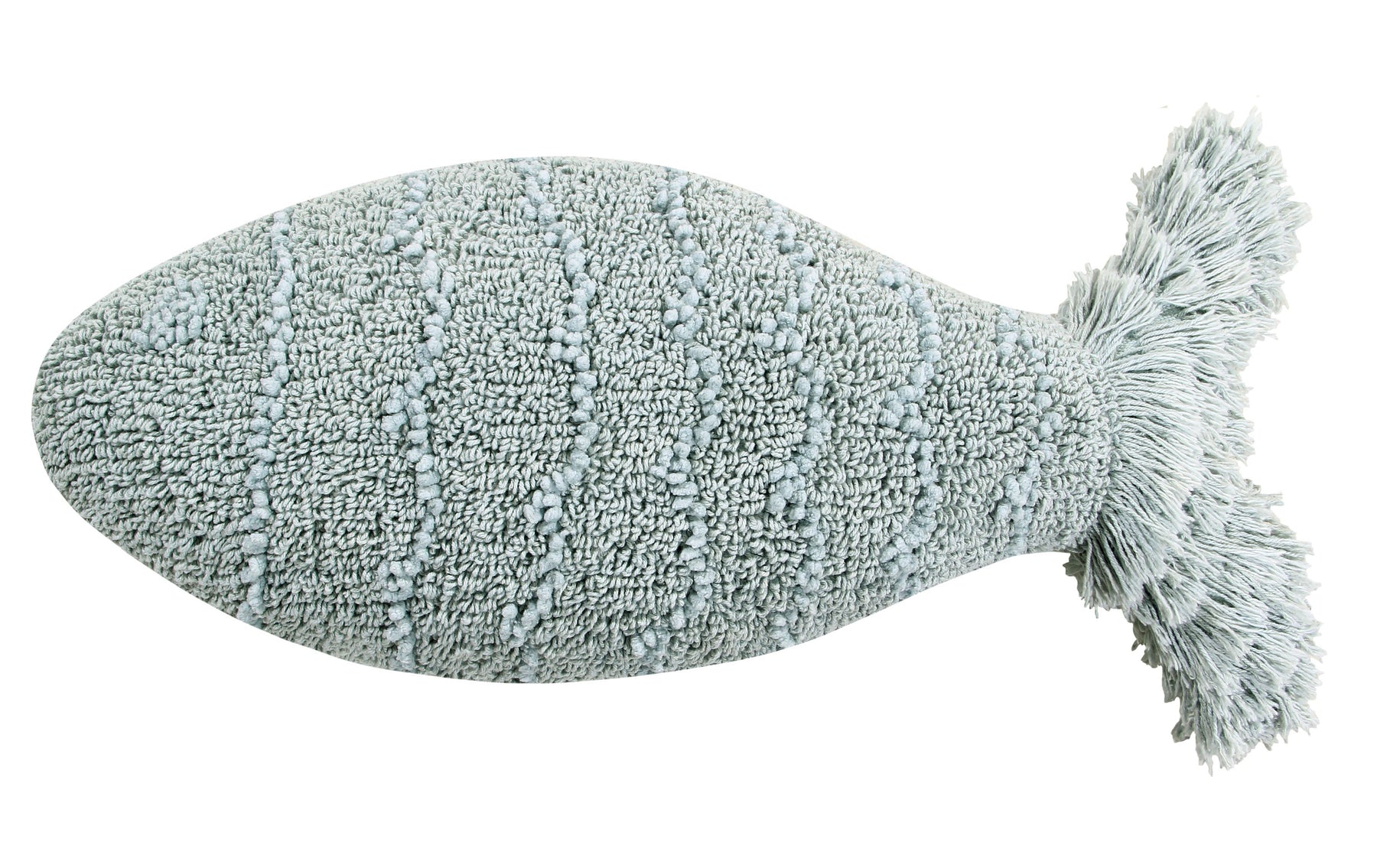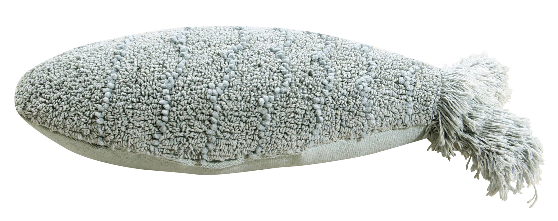 This fish-shaped cushion will be a favorite with kids and adults alike! With an exterior made of tightly-woven 100% cotton (with 100% polyester filling), this aqua blue cushion delights with its combination of textures. Chenille and loop techniques create a fish-scale effect on one side--and at the tail, cotton yarns imitate a fin. This cushion is an original but fits in anywhere--from kids bedrooms and play rooms to living rooms and terraces. Machine-washable. Discover the entire Sea collection of cushions, blankets and wall decor!