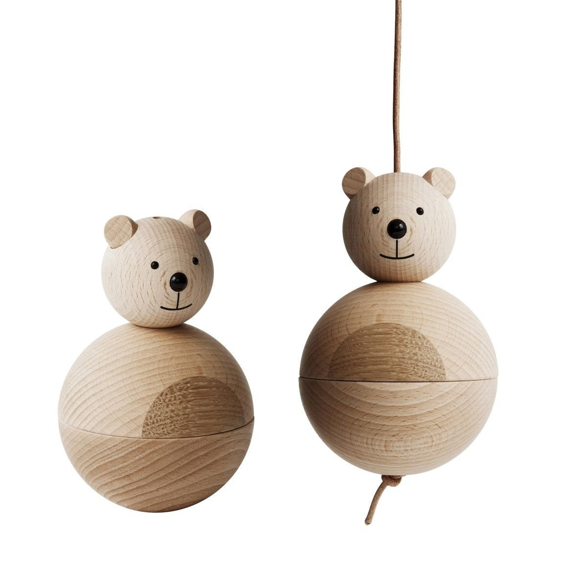 The Bear is made of a mix of beech and oak wood and comes with a leather string for hanging.