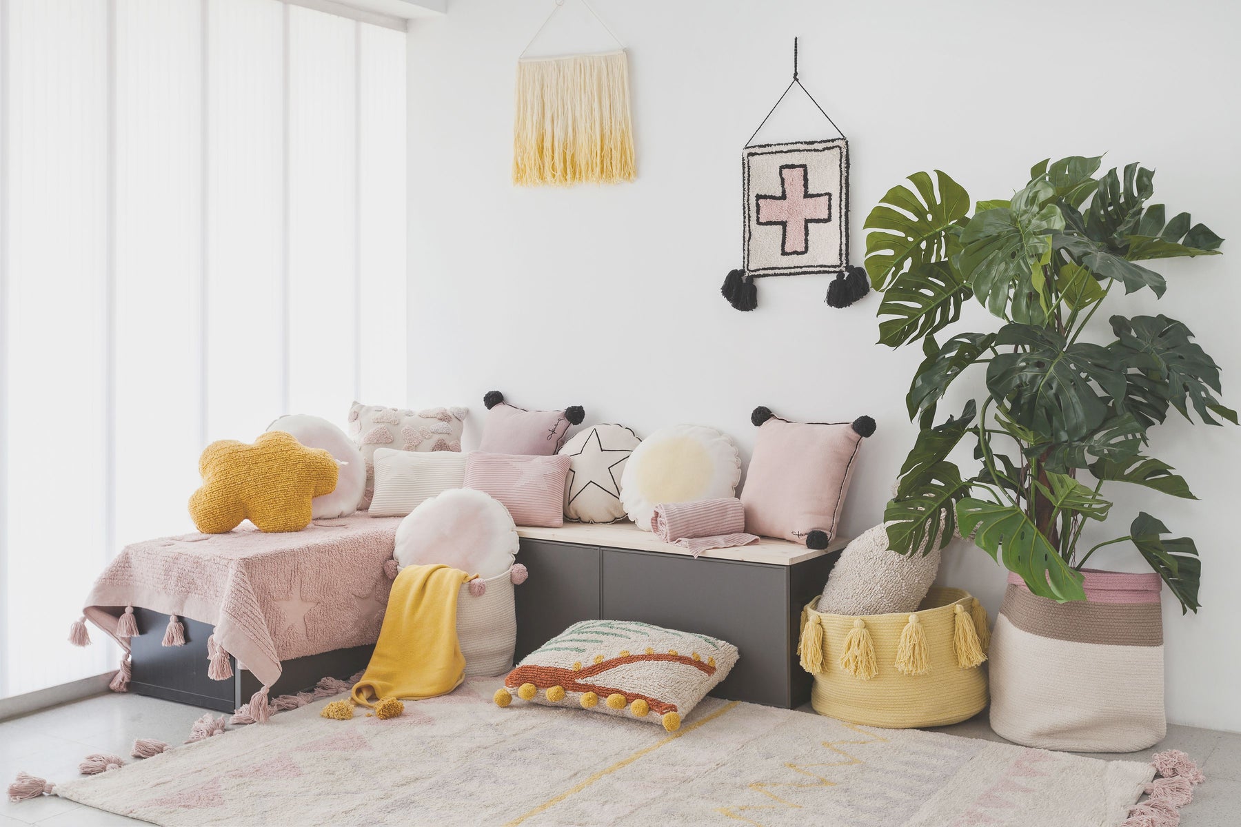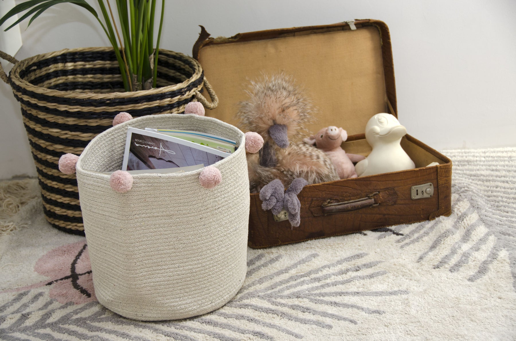 This practical, whimsical basket has as many uses as the day is long! It offers stylish functionality in a mudroom, kid's room, or anywhere you need extra storage. Get one for every family member, and color-code with four pompon colors!