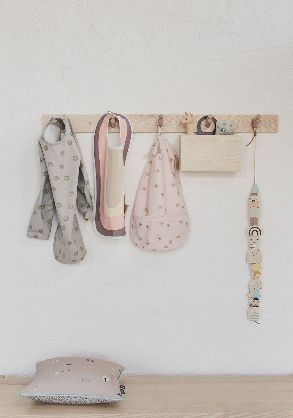 The apron can be used during meals, but also when the child draws or paints. It covers the baby's front and both arms - it helps to avoid food etc. on the clothes. Use the apron as an alternative to a bib.