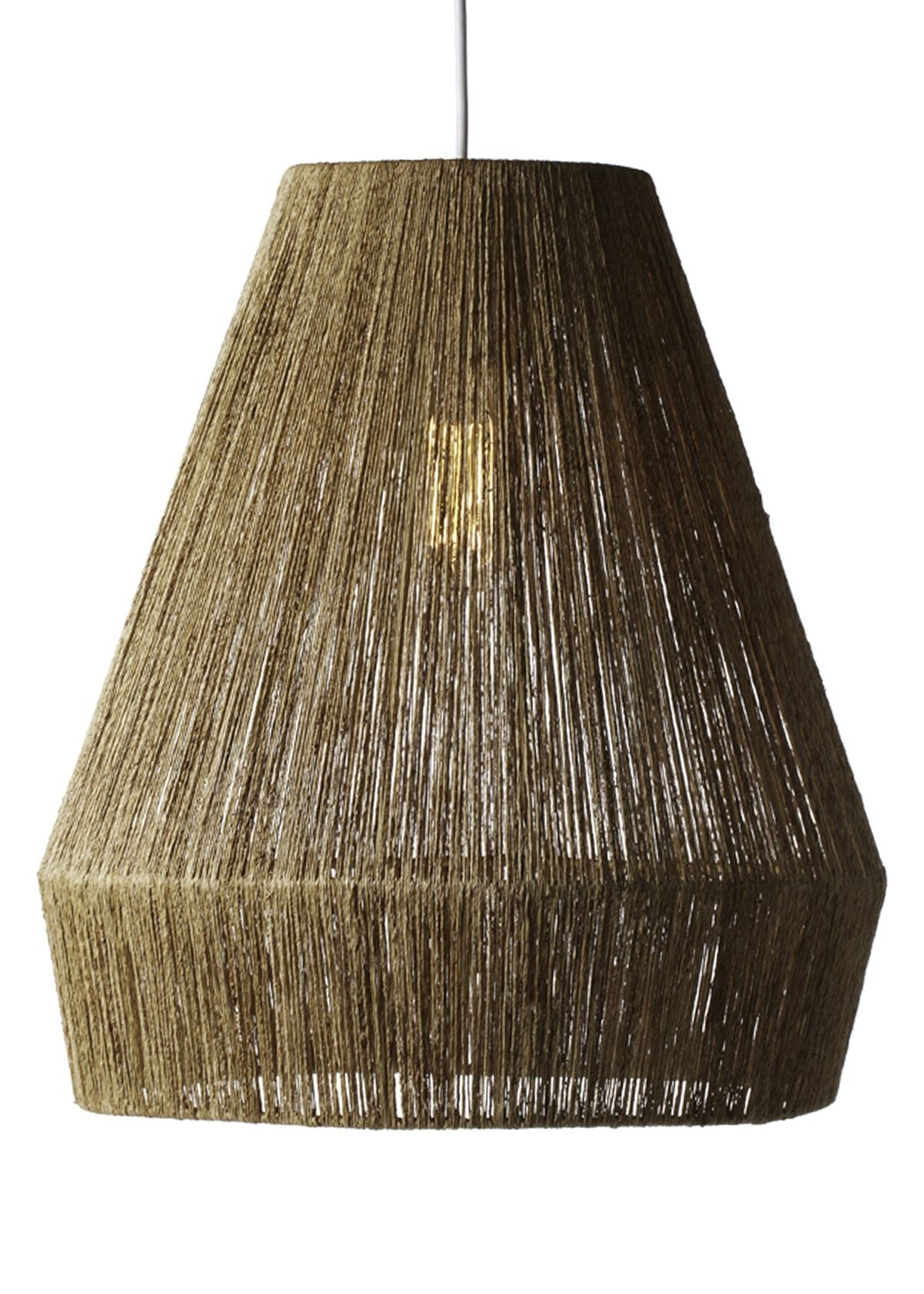 Finely twisted jute fabric is stretched over a sturdy wire frame to create a mid century inspired pendant lamp. The Pendant kit is ETL listed/conforms to UL Standard No. 1598, certified to CSA STD. C22.2 NO. 250.0. Maximum wattage is 60W.