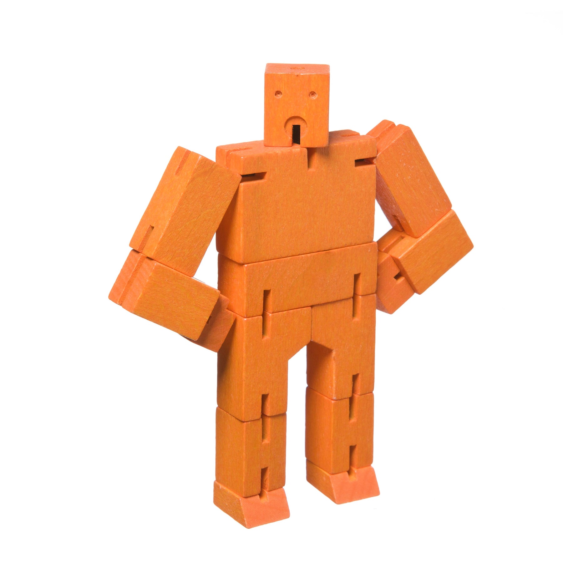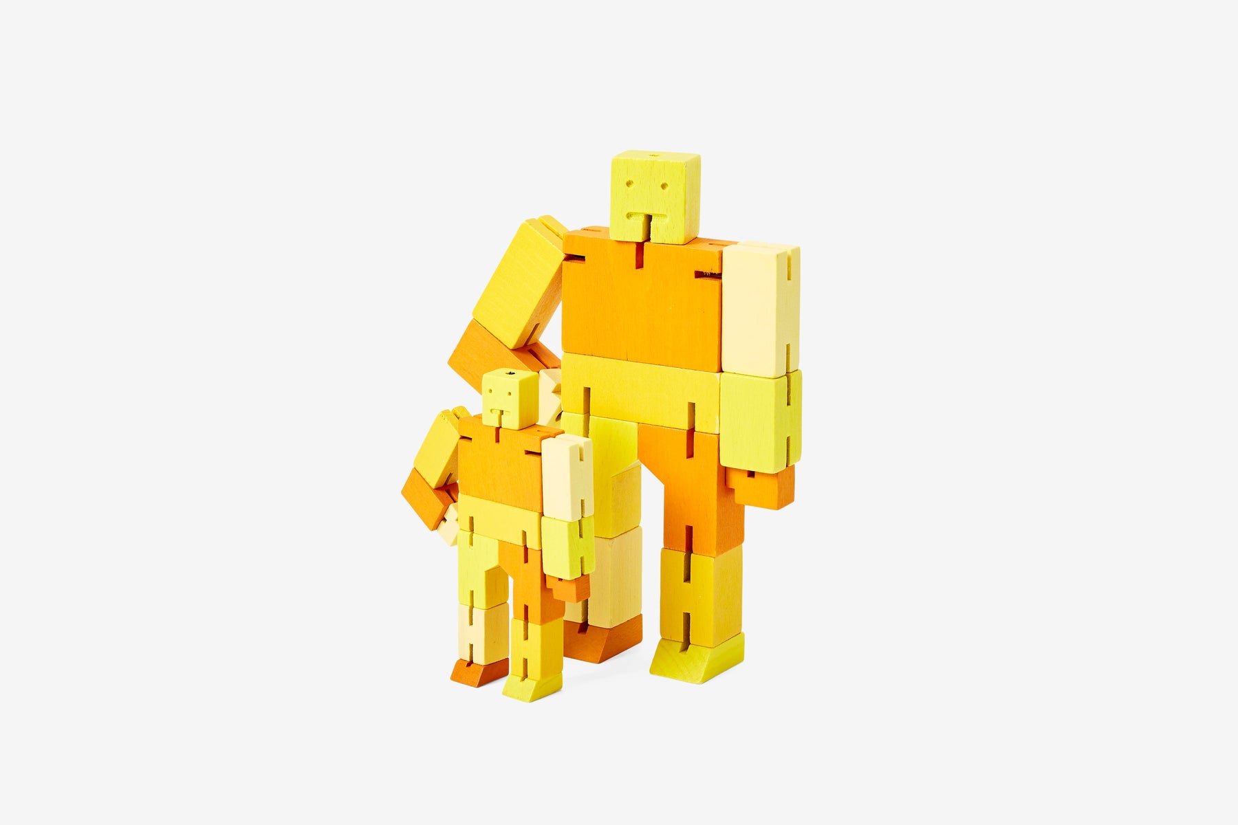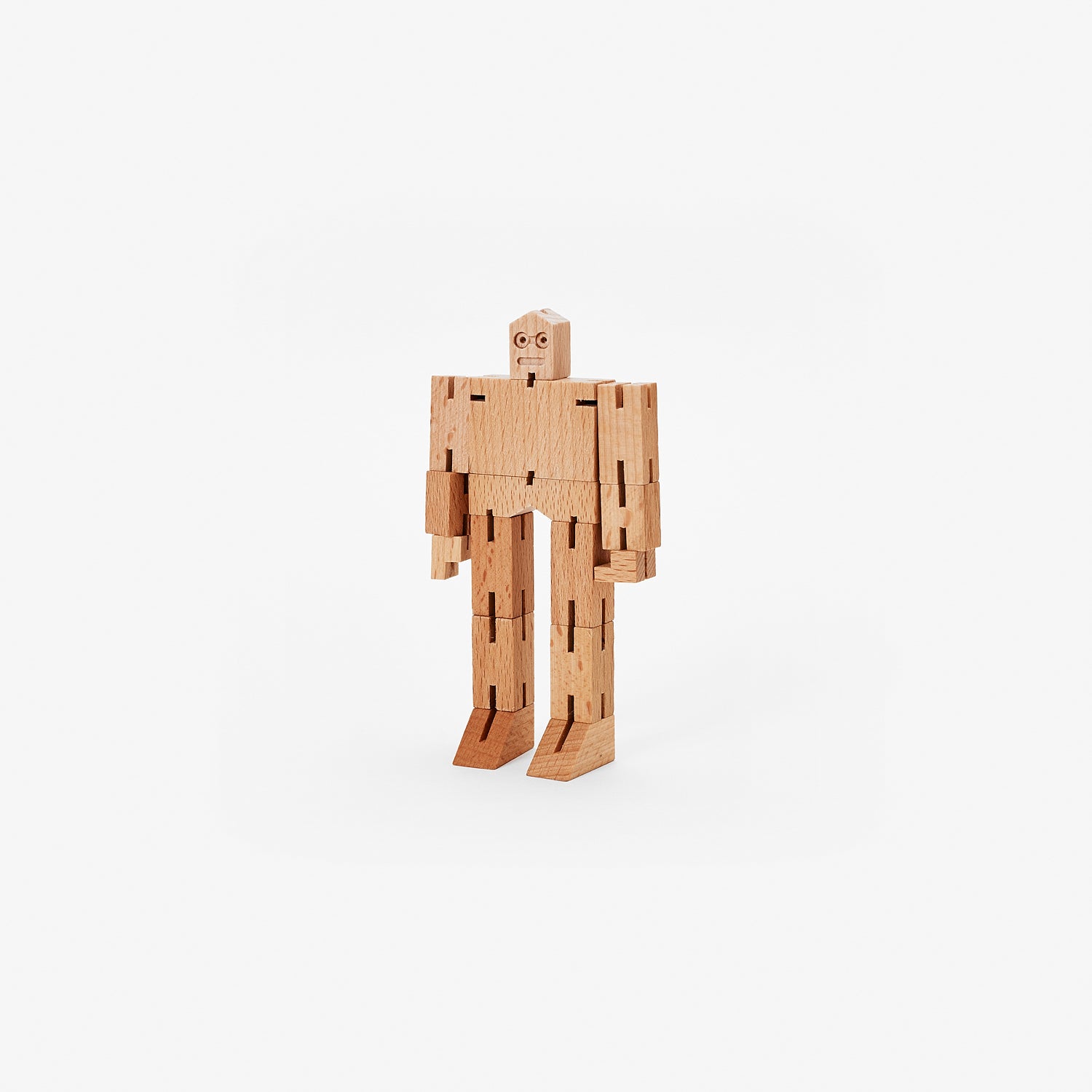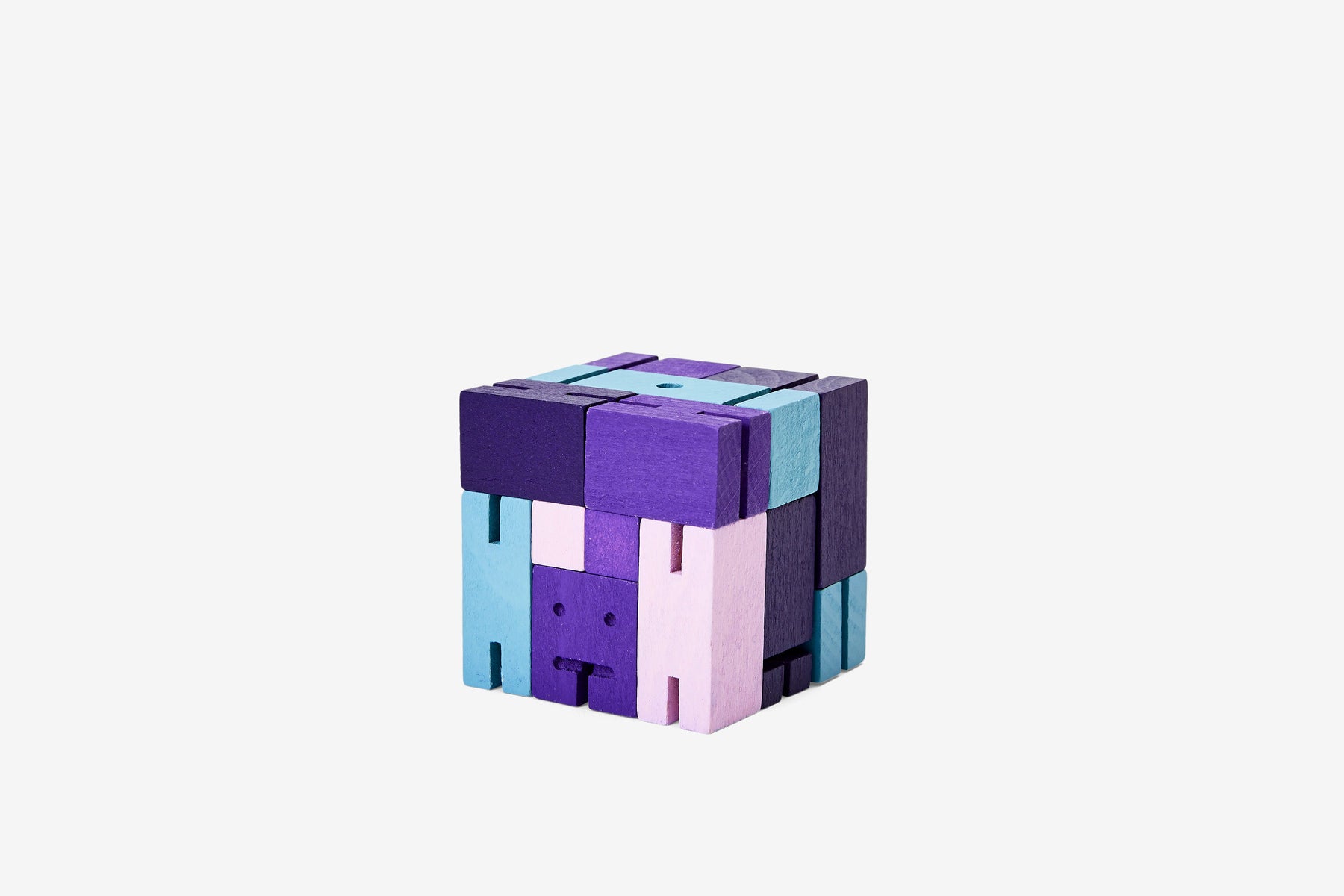 Cubebot® is a wooden toy robot inspired by Japanese Shinto Kumi-ki puzzles. Made from wood and elastic, Cubebot can be positioned to hold dozens of poses. When it's time to rest, Cubebot folds back into a perfect cube. A classic toy for all ages that will endure generations of play.