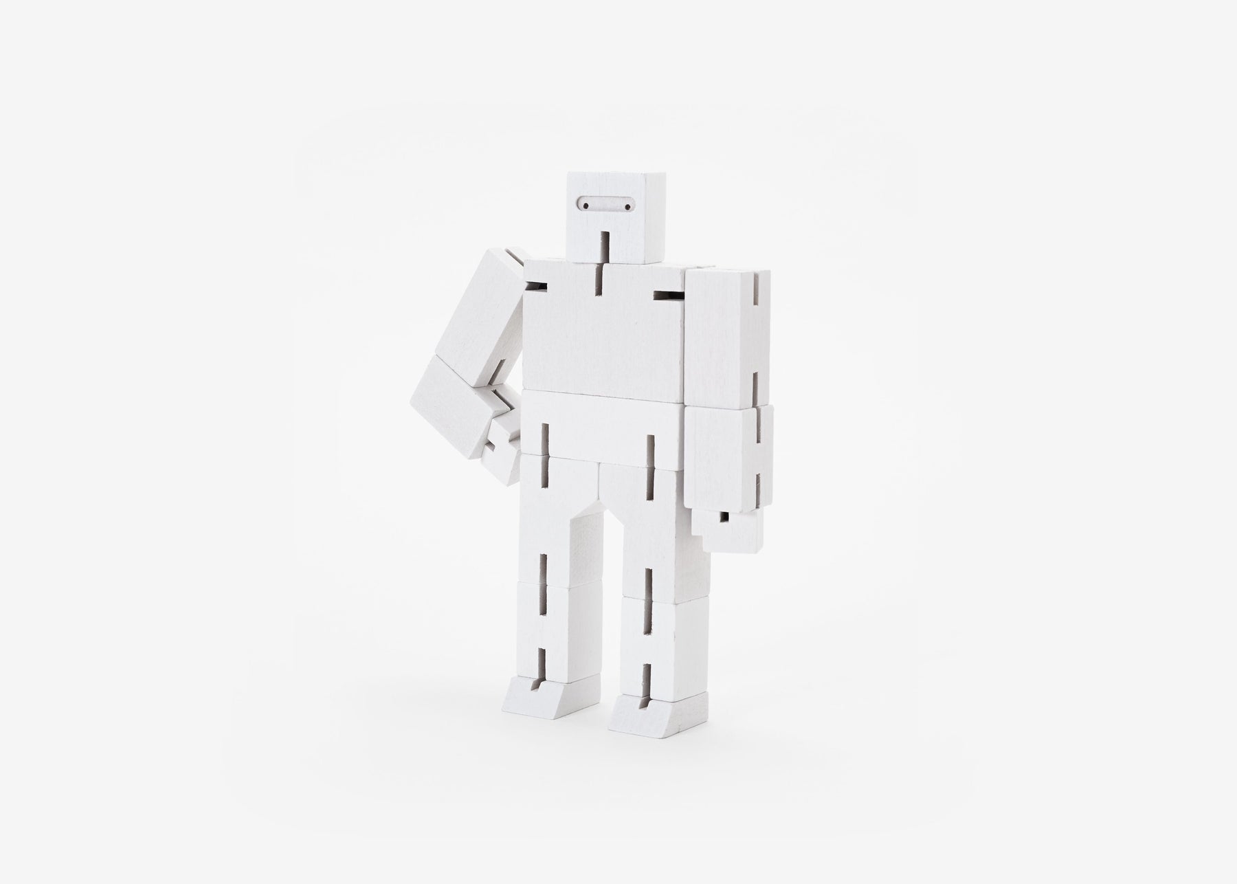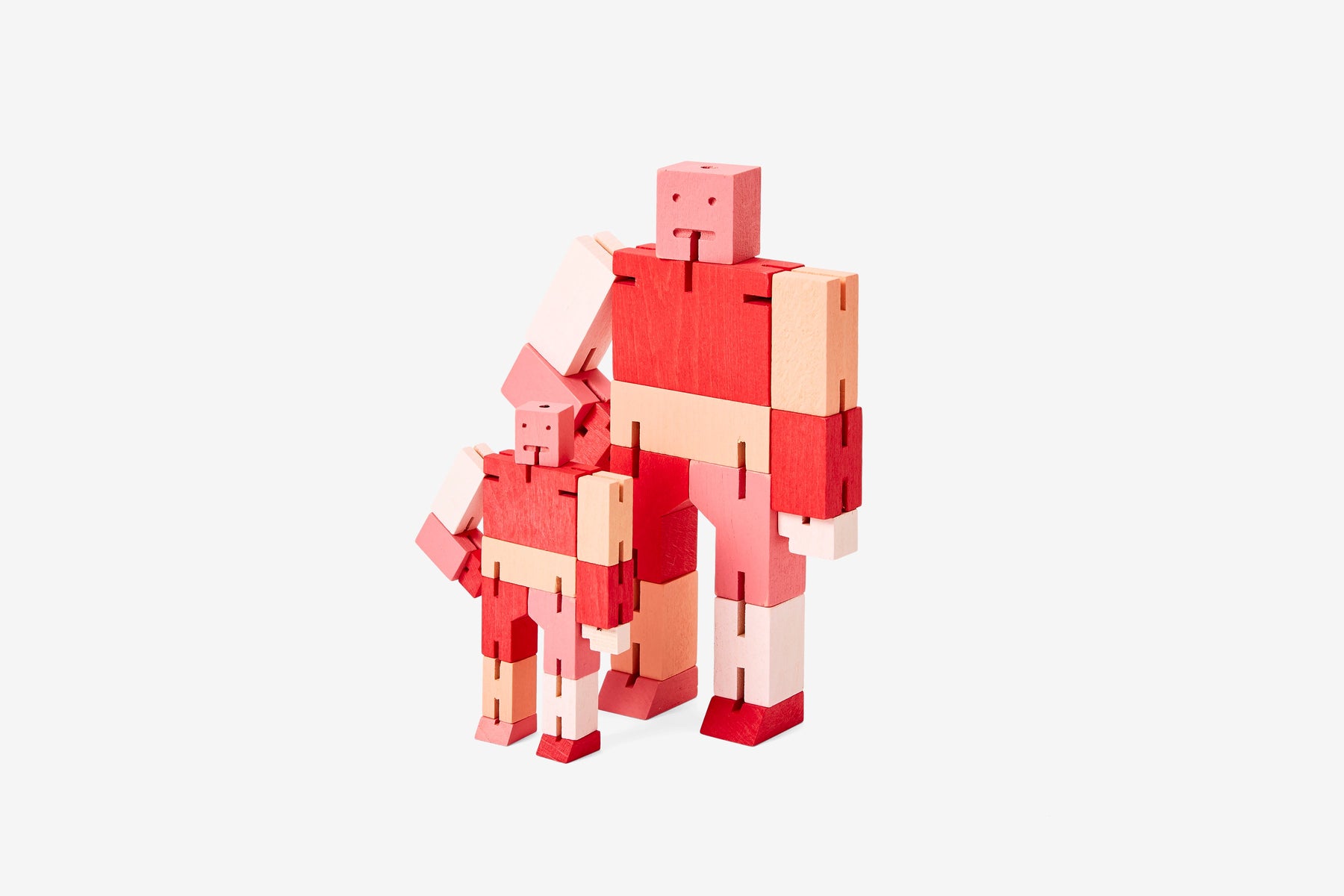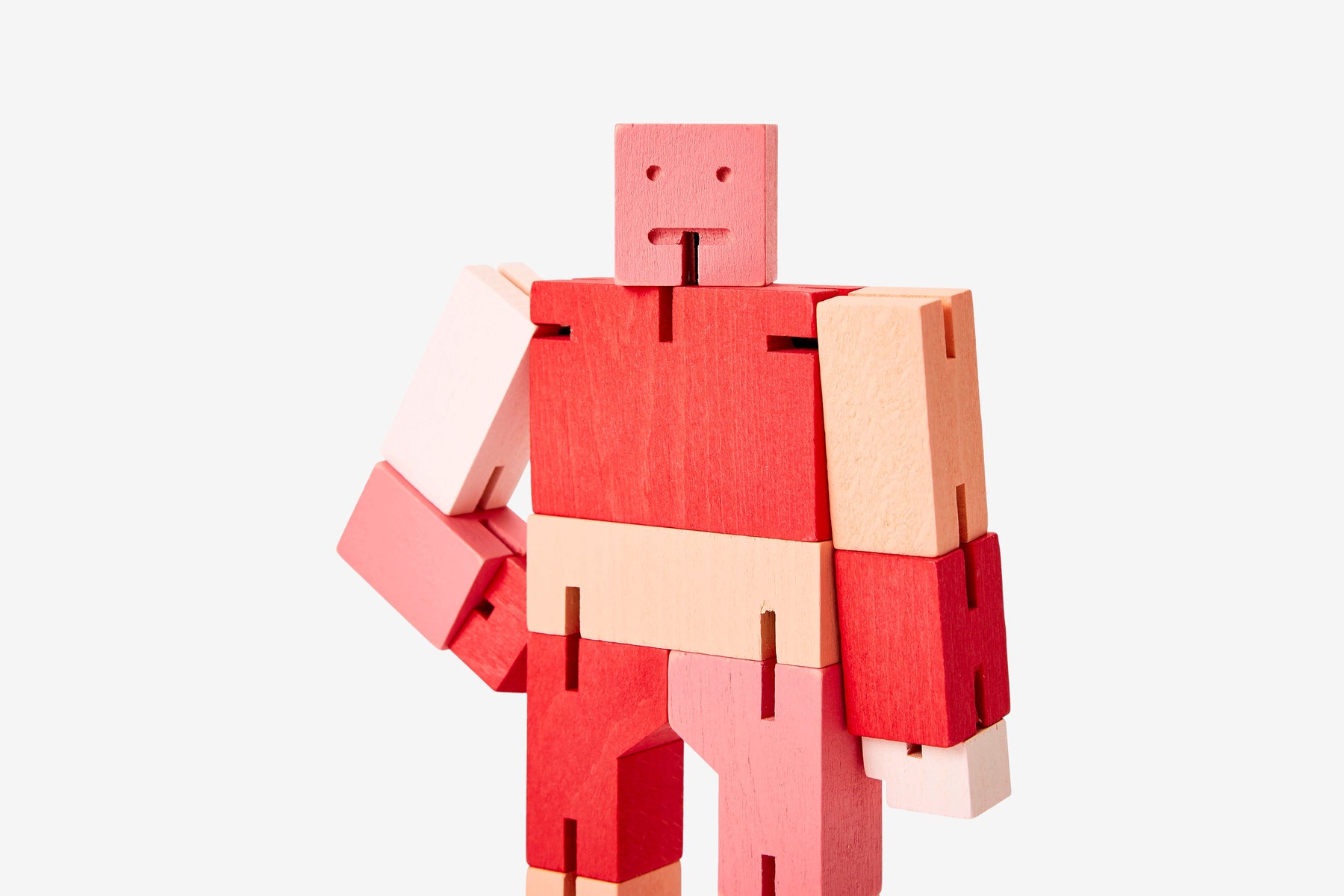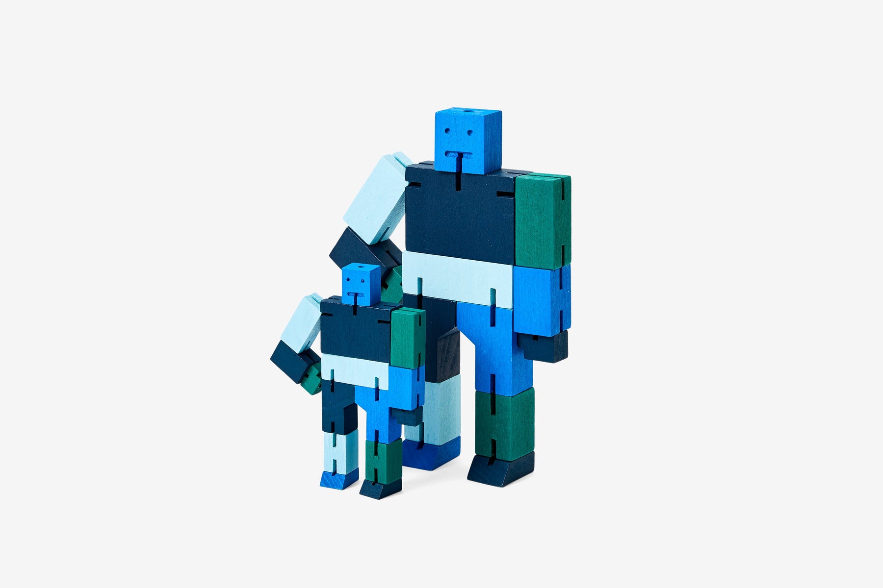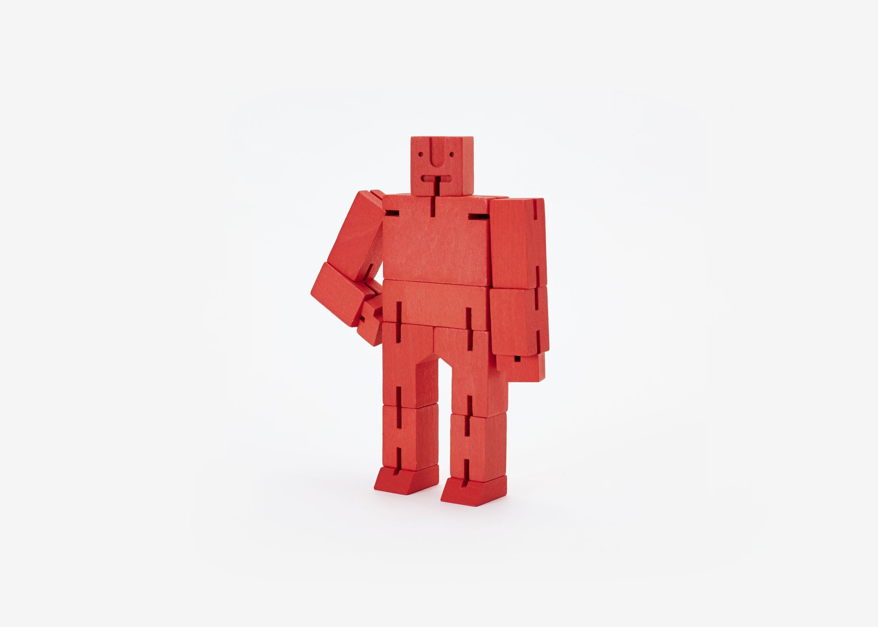 Cubebot® is a wooden toy robot inspired by Japanese Shinto Kumi-ki puzzles. Made from wood and elastic, Cubebot can be positioned to hold dozens of poses. When it's time to rest, Cubebot folds back into a perfect cube. A classic toy for all ages that will endure generations of play.
