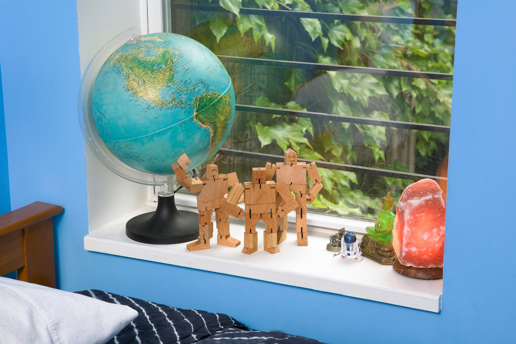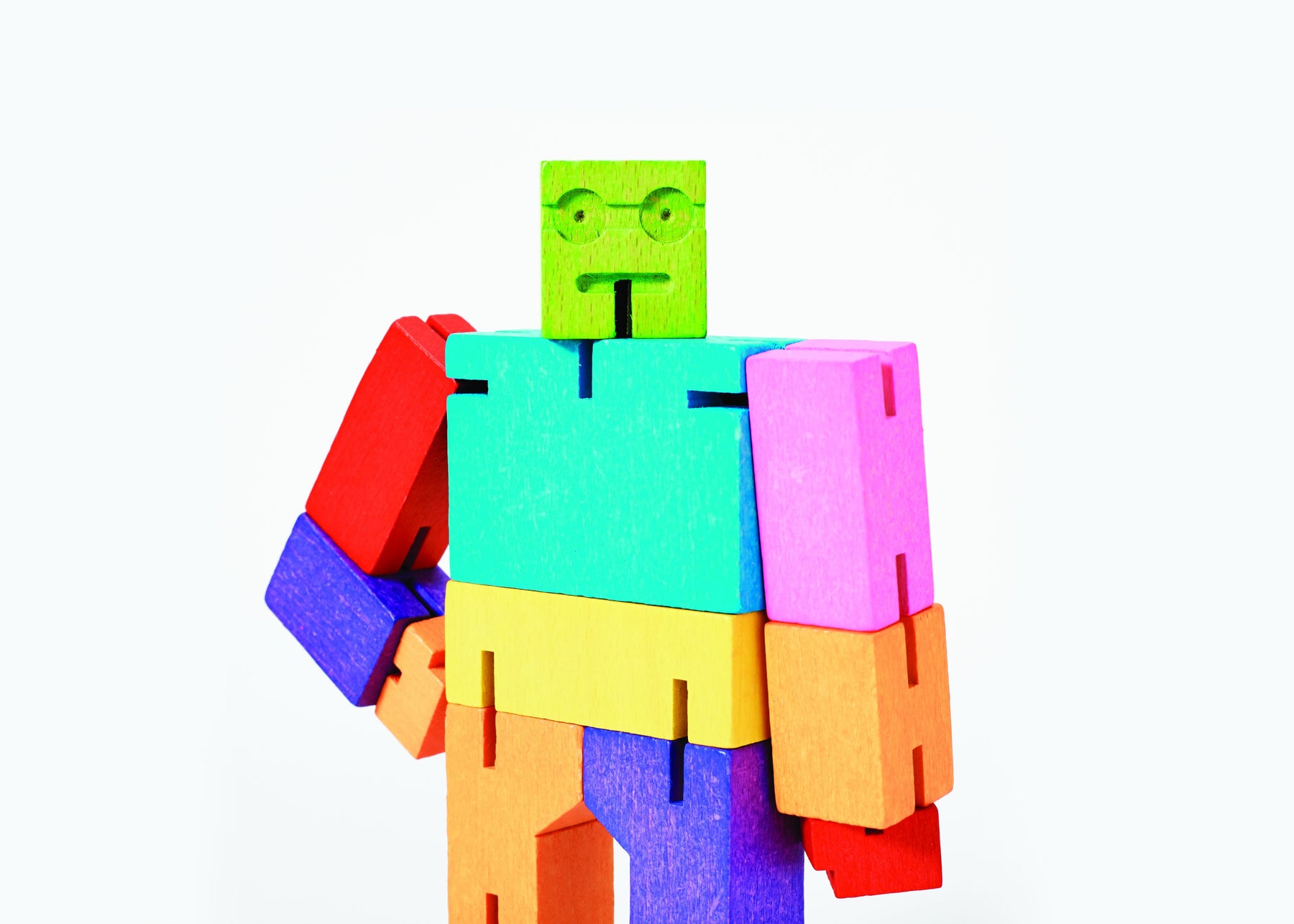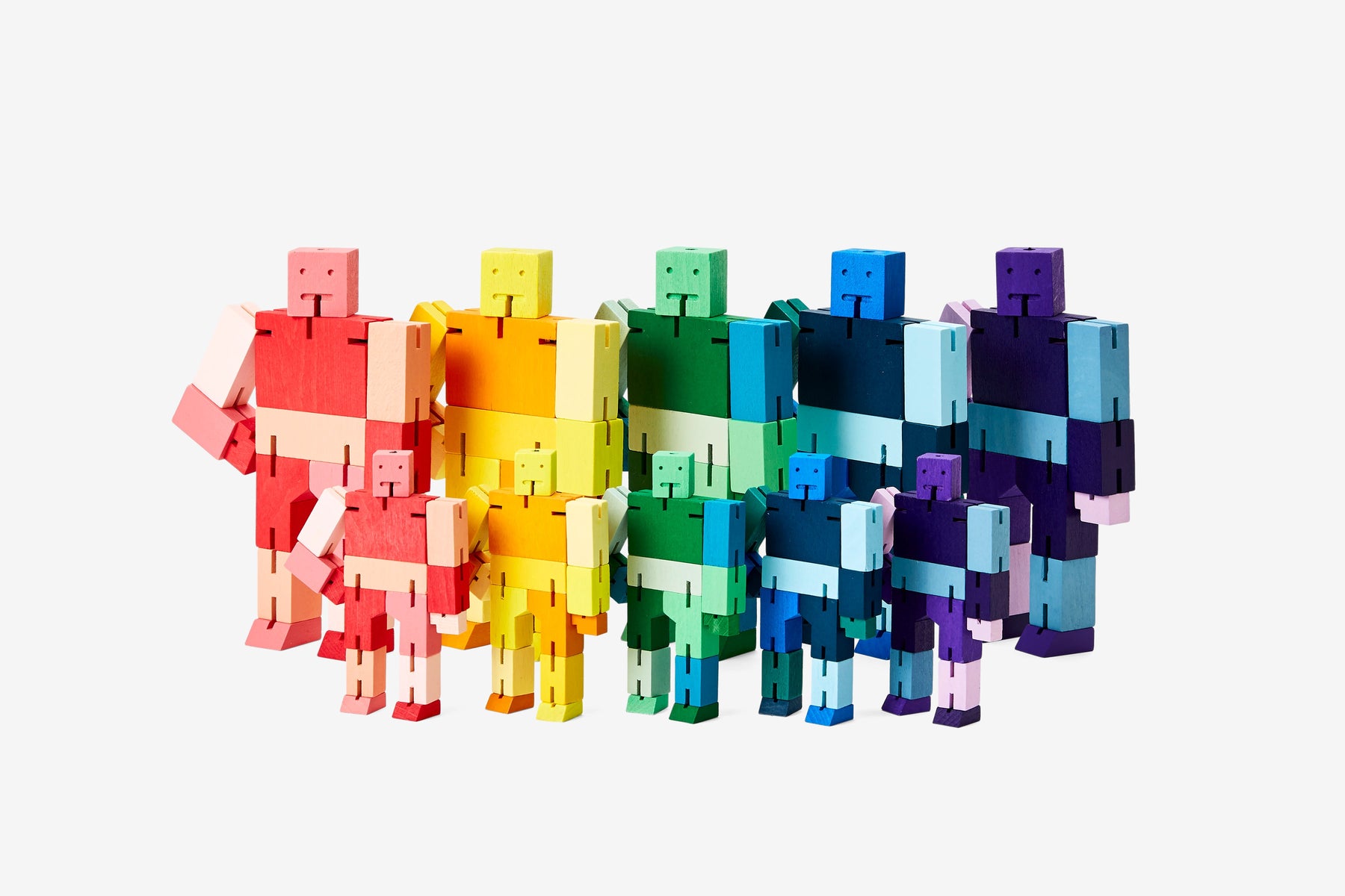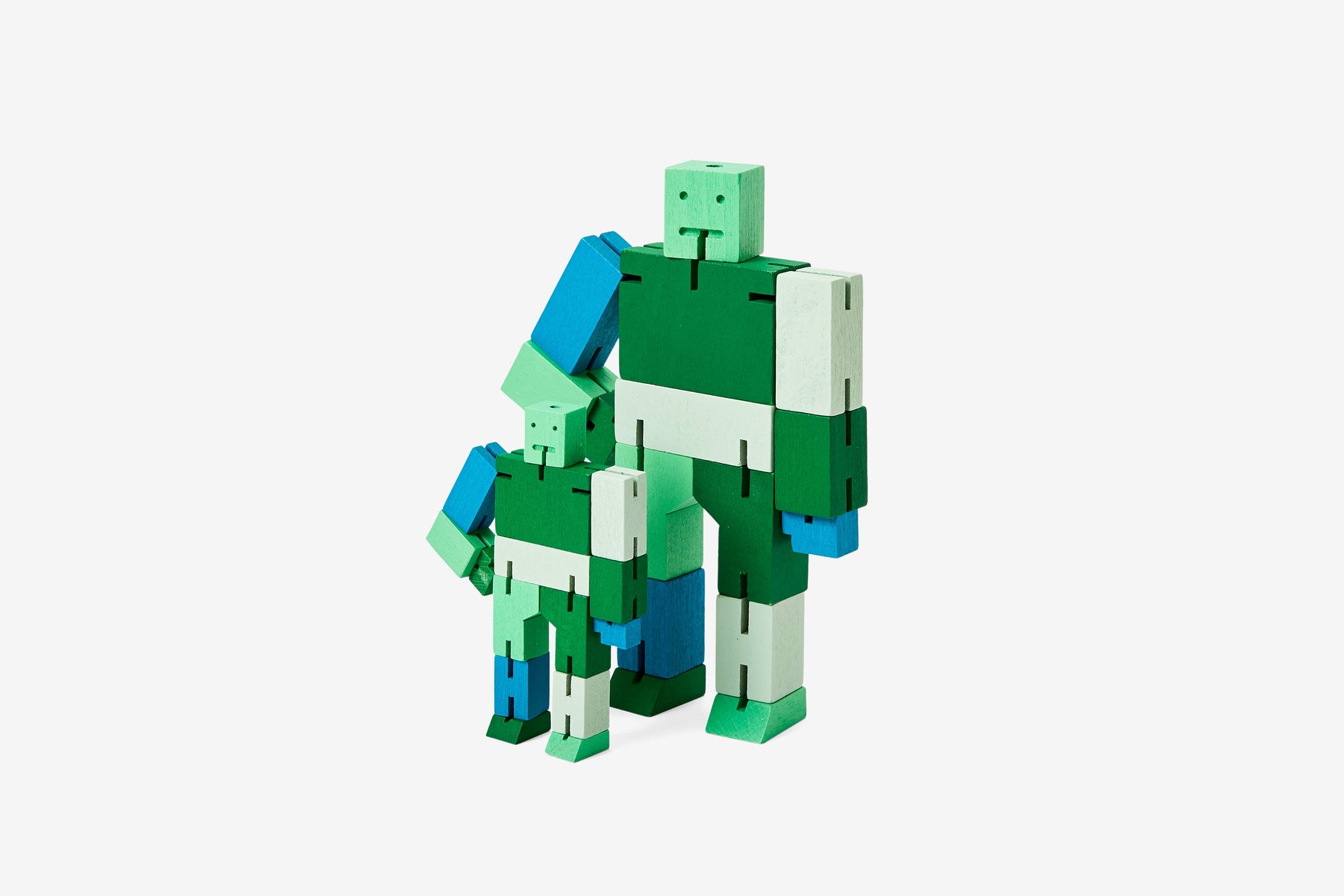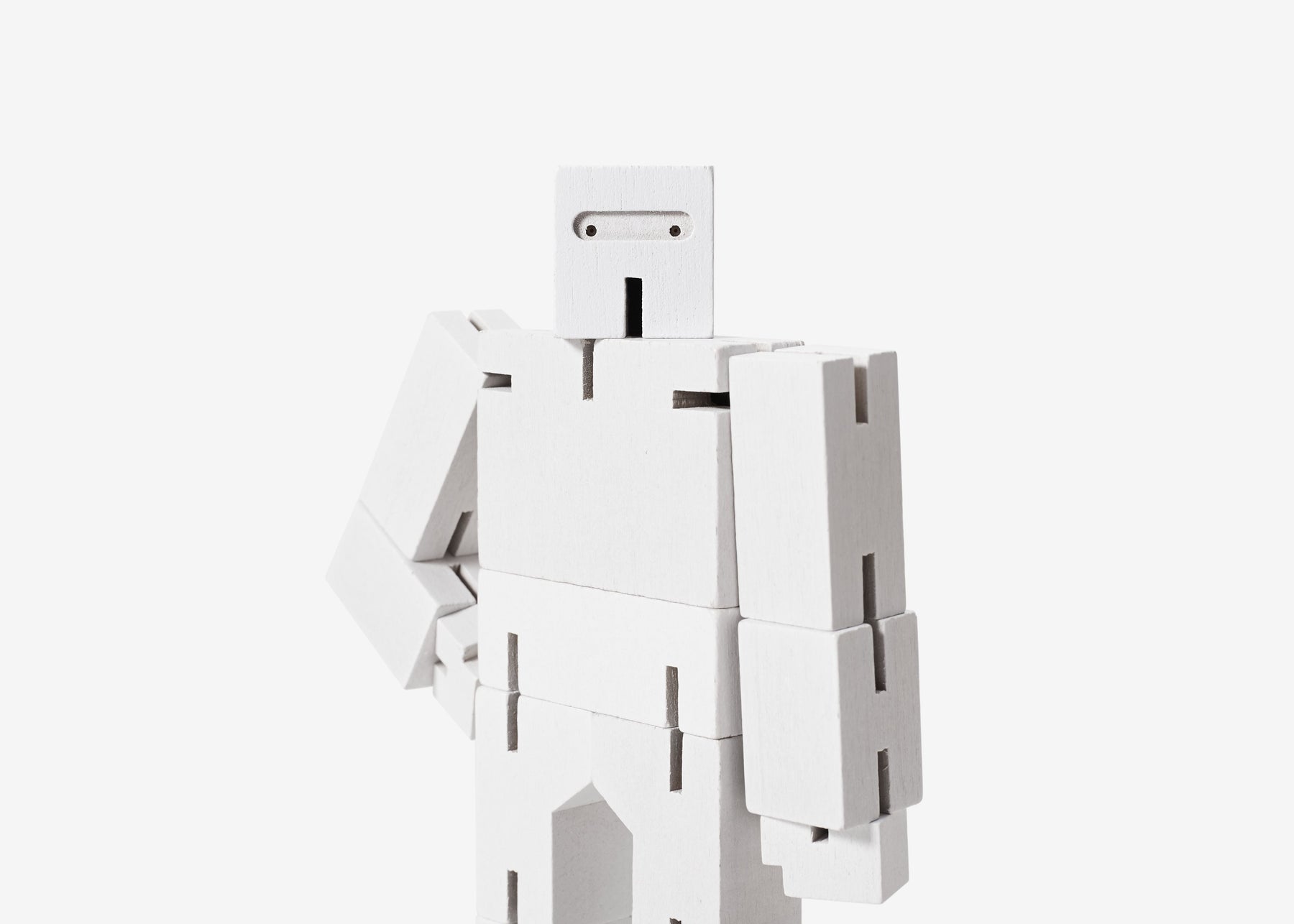 Cubebot® is a wooden toy robot inspired by Japanese Shinto Kumi-ki puzzles. Made from wood and elastic, Cubebot can be positioned to hold dozens of poses. When it's time to rest, Cubebot folds back into a perfect cube. A classic toy for all ages that will endure generations of play.