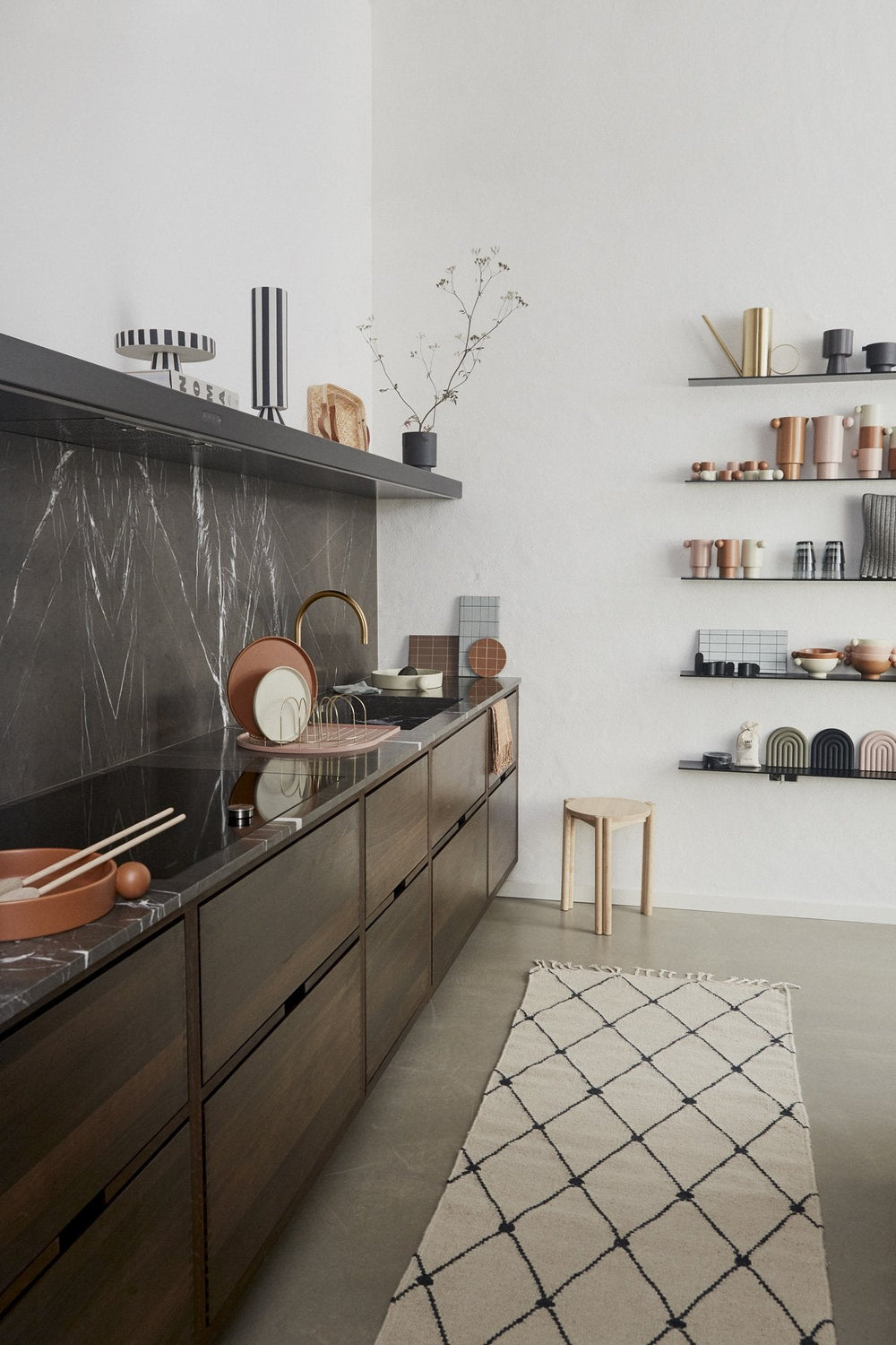 The brass stand can be used on the dish tray in silicone - it helps keep track of plates etc. while they are drying. Washing up can not be avoided, so why not make it a little more fun with accessories in a nice design. Purchase the dish tray here.