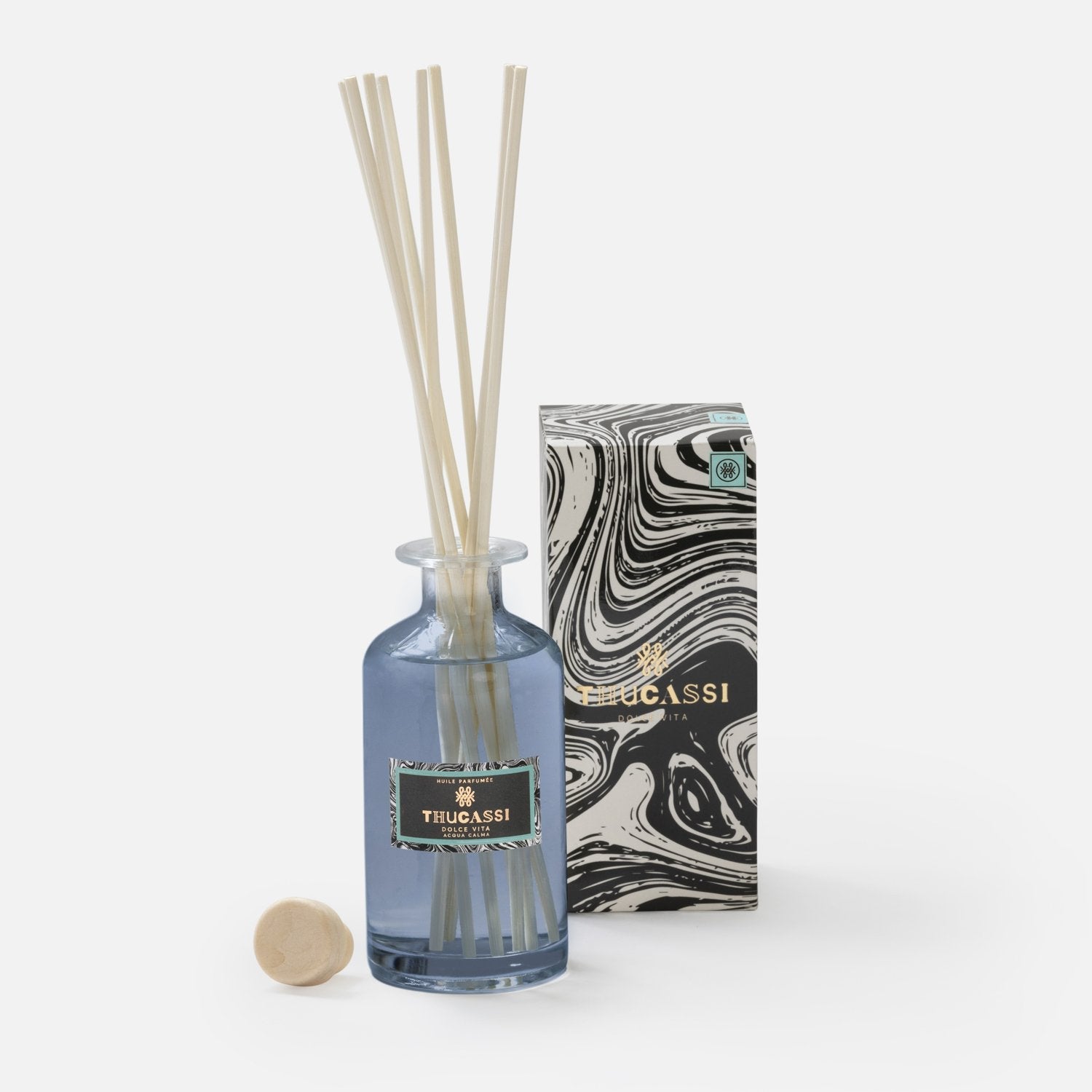- FINISH: Blue Glass, Clear Liquid, Bamboo Reeds