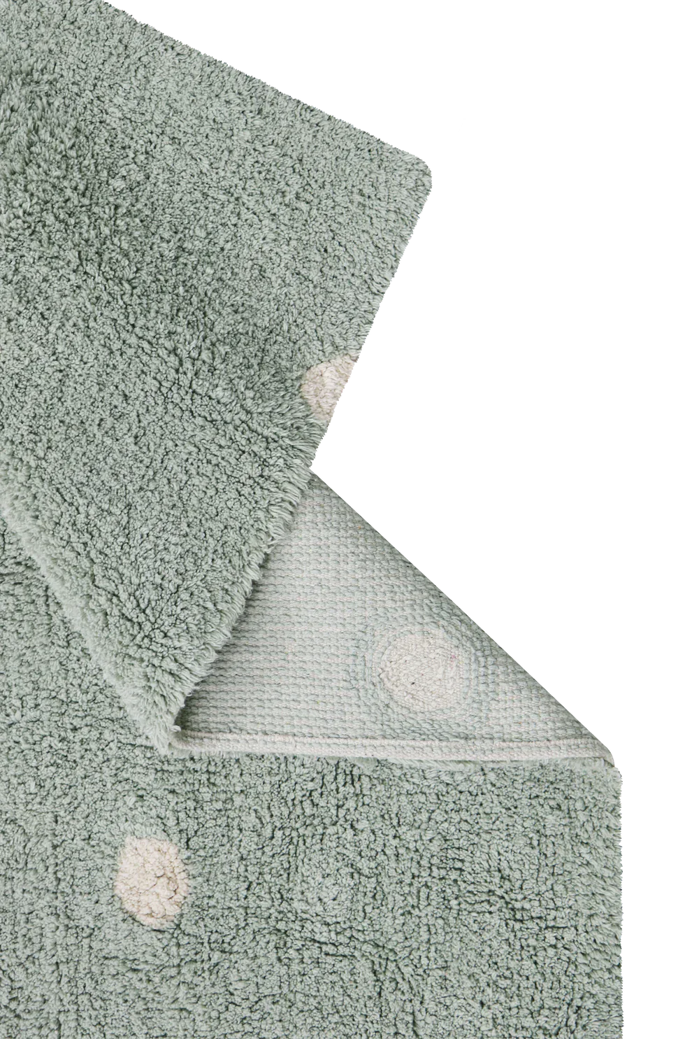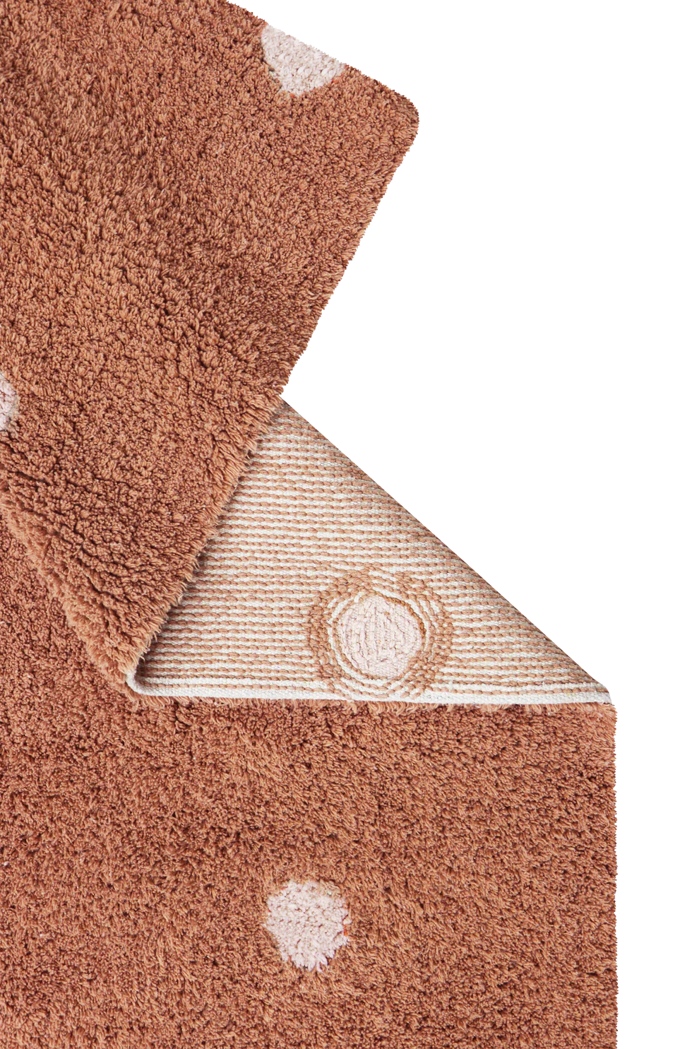 A soft, plush cotton rug with a dots design that never goes out of style. Tufted in extra high-density, soft cotton pile, the Mini Dot rug is available in three color combinations: Chestnut with Natural dots, Rose with Natural dots and Blue Sage with Natural dots.