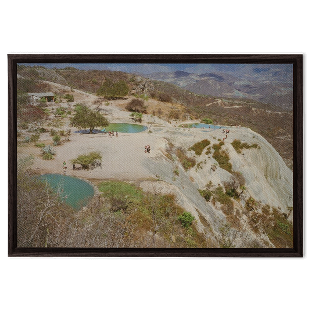 Vintage world travel. Shot on film and printed digitally, this epic photo of Hierve el Agua is inspiring in scale, and calming in palette. Create a window to the world with unique photographic wall art in your home.