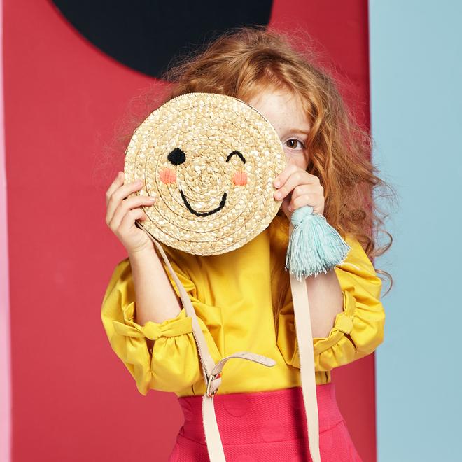 We've taken a timeless classic material and given it a quirky modern twist, with this delightful woven straw emoji cross body bag. Fully lined, with a sturdy leather strap, and zip closure. Featuring an adorable embroidered winking face and striking bright tassel.