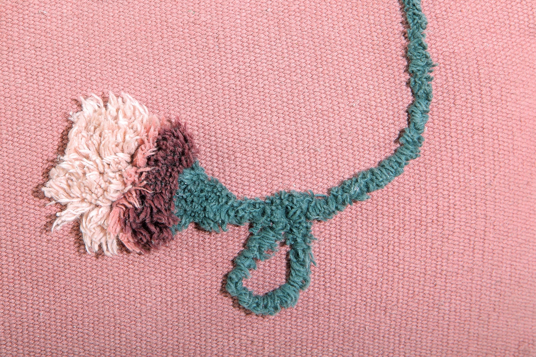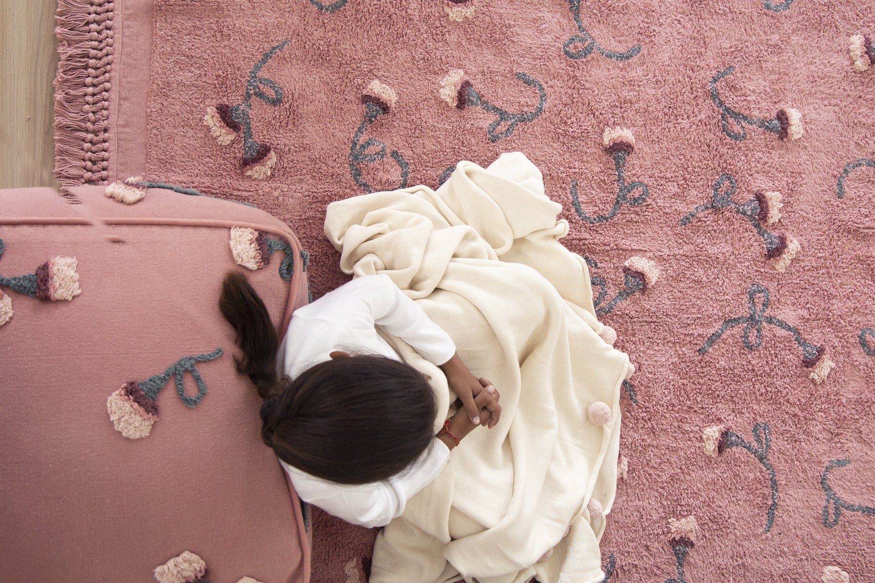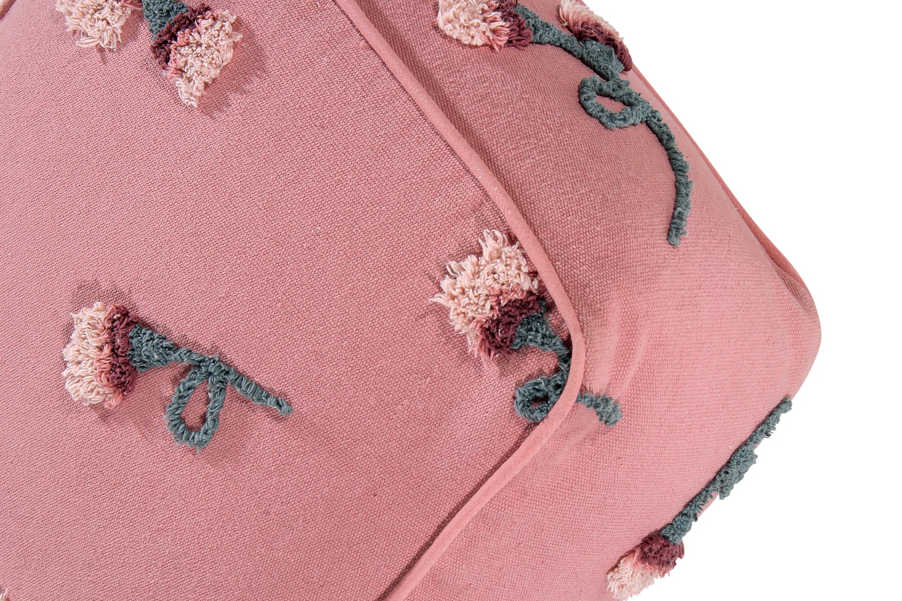 Our new pouffe with a floral design has been inspired by the colors and textures from a botanical garden. Not only as a decorative accessory, it could be used as a footrest, to sit down or, if you put a tray on it, it can serve as a table. Being a handmade pouffe, every woven flower has been carefully perfected with scissor, which gives a slight relief with respect to the rest of the designs. The cover is removable with a zipper for easy washing and the inner cushion is filled with expanded polystyrene balls.