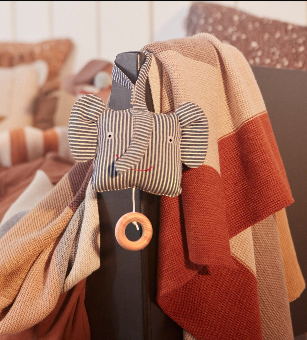 The music mobile with Erik Elephant creates a calming and cozy atmosphere and will surely help your child fall asleep. The calm melody starts when the ring at the bottom is pulled down.