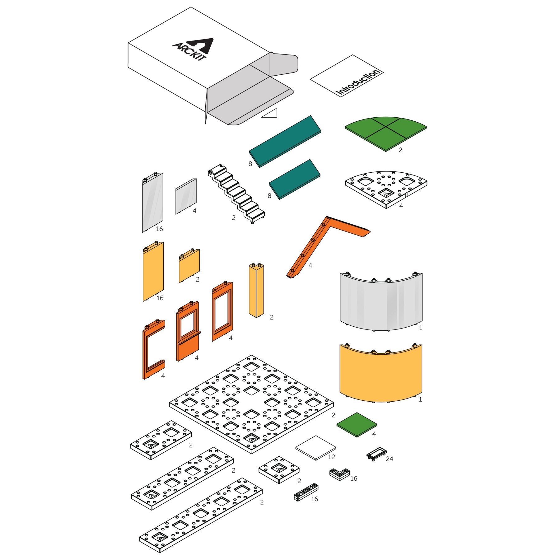 The Go Colors 2.0 ‘open ended’ model building kit has large floor plates and easy ‘click and connect’ components which make this kids model kit the perfect starter set for budding architects. The Go Colors architectural model design kit is perfect as a stand-alone kit or as an add-on to existing Arckit 3D model building kits. Arckit empowers minds through Architecture.