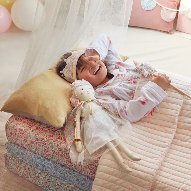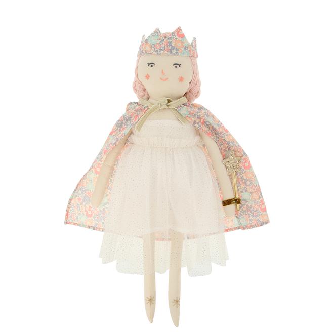 This beautiful Imogen Princess Doll is a truly gorgeous gift. She is wearing a pretty gown, with a Liberty floral print cape and crown. She comes with a gold sparkly magic wand for casting good spells.