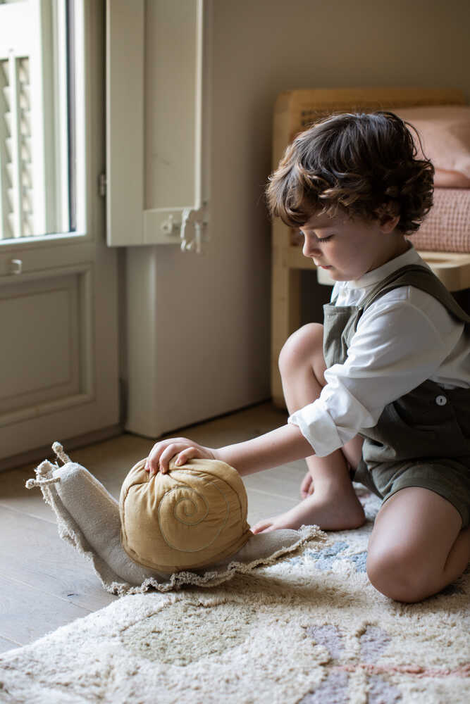 Kids are always fascinated by snails. And who hasn't had a pet snail once? A throw pillow and an inseparable pal, all in one, this decorative piece serves both to play and to keep the room pretty, following our magical pond theme in our Fantasy Garden collection.