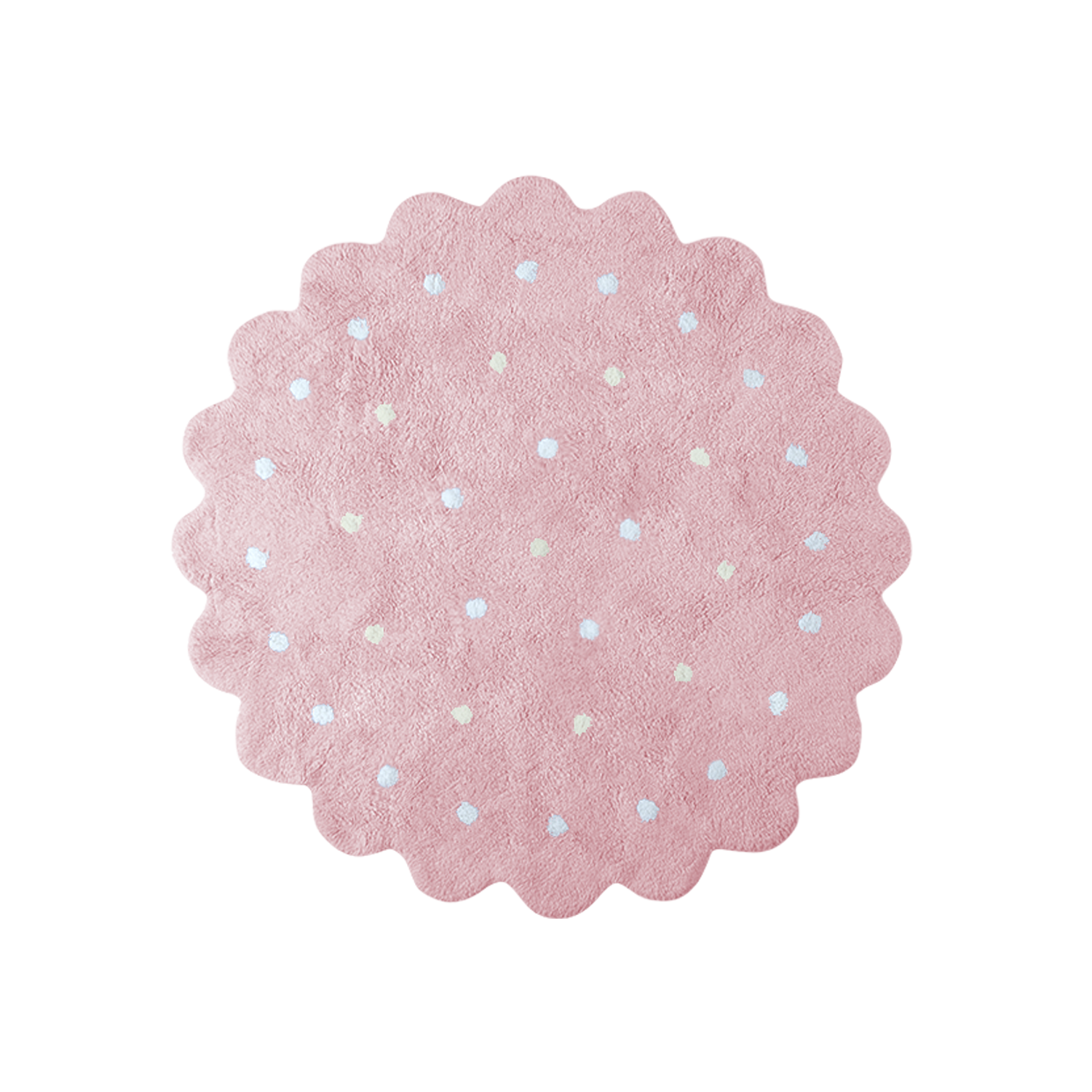 This is the sweetest of our rugs; like a shortbread cookie without any of the guilt! With its scalloped edges and contrasting dots, you'll fall in love with the casual comfort of this design. It's versatile enough for any room of the house.