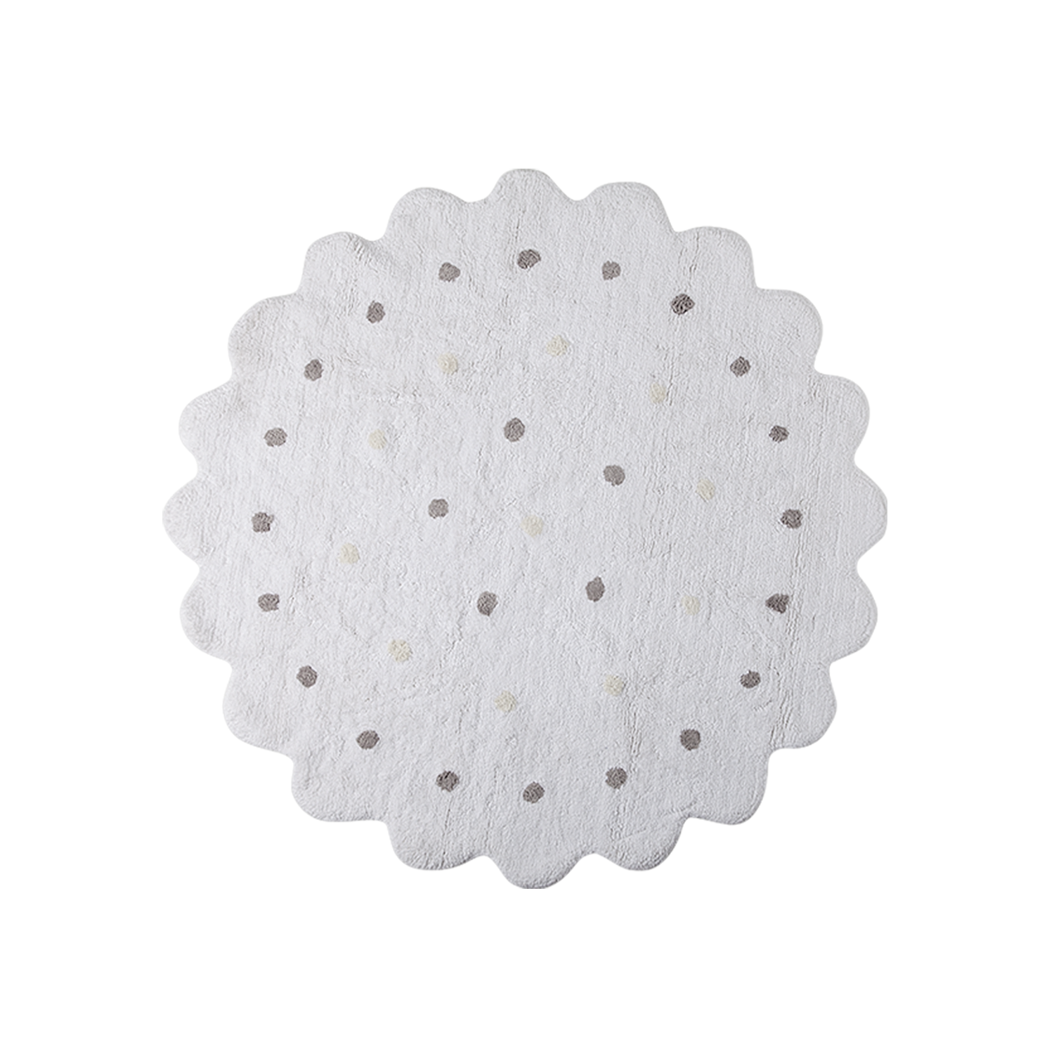 This is the sweetest of our rugs; like a shortbread cookie without any of the guilt! With its scalloped edges and contrasting dots, you'll fall in love with the casual comfort of this design. It's versatile enough for any room of the house.