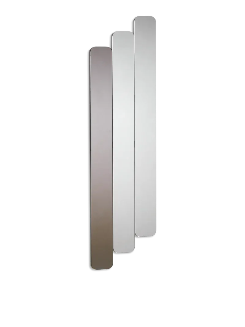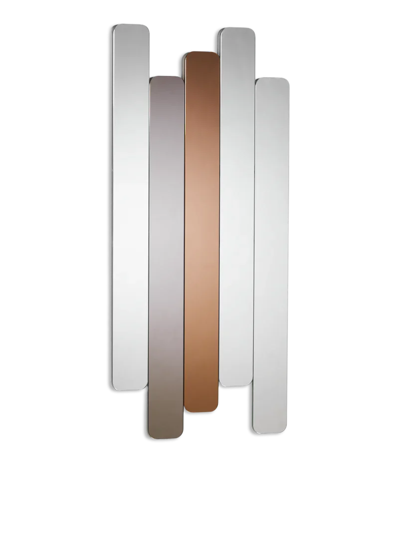 The name ‘Logs’ stems from the designer’s source of inspiration, found in the calmness of the Nordic birch forests. Embodying the repetition of numerous trees, this aesthetically versatile piece echoes the identical shape of the mirrors. Simultaneously static yet softly organic. The individual mirrors can be placed at different heights to obtain a wavy effect, allowing you to construct a personalised expression.