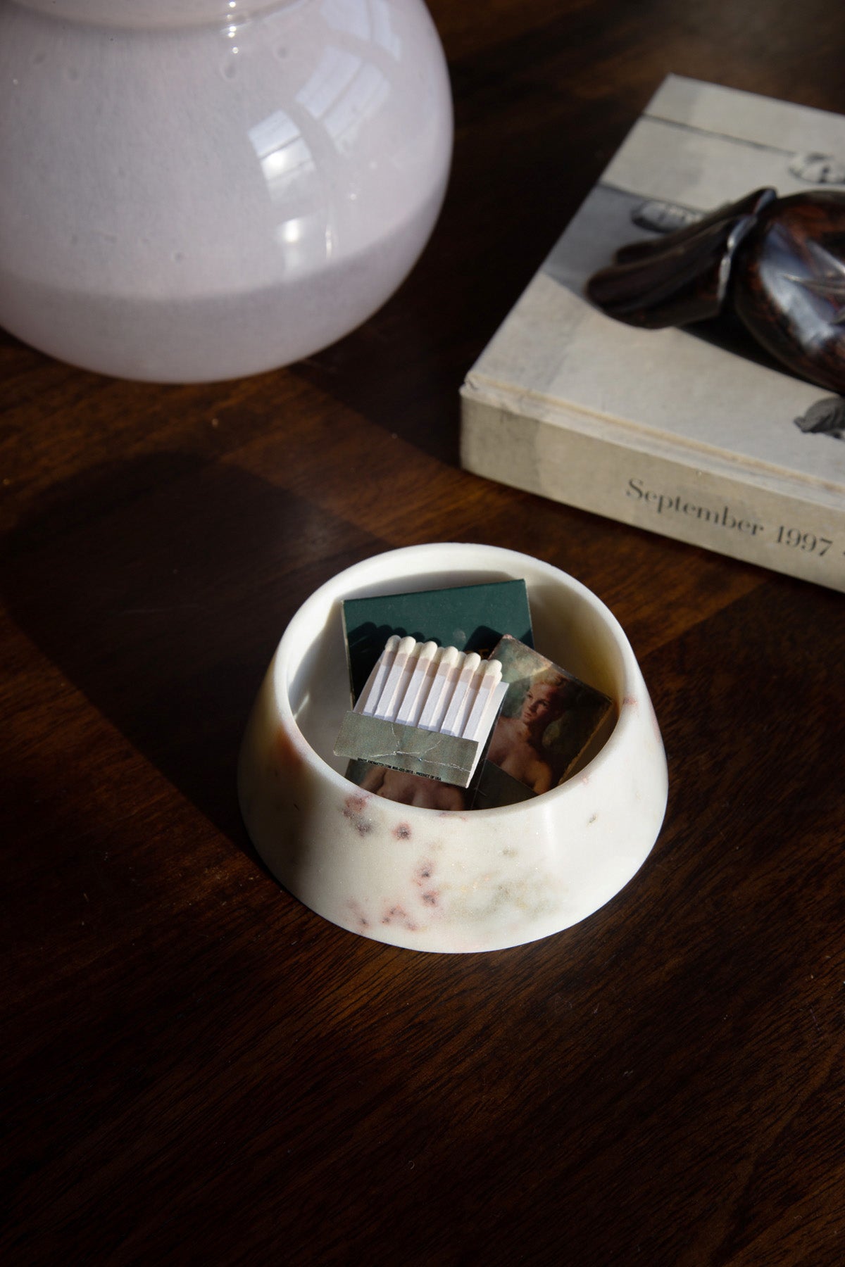 There may be small chips or scratches on the surface. These are all characteristics of the natural stone. Each bowl is hand carved from used marble sourced in India.