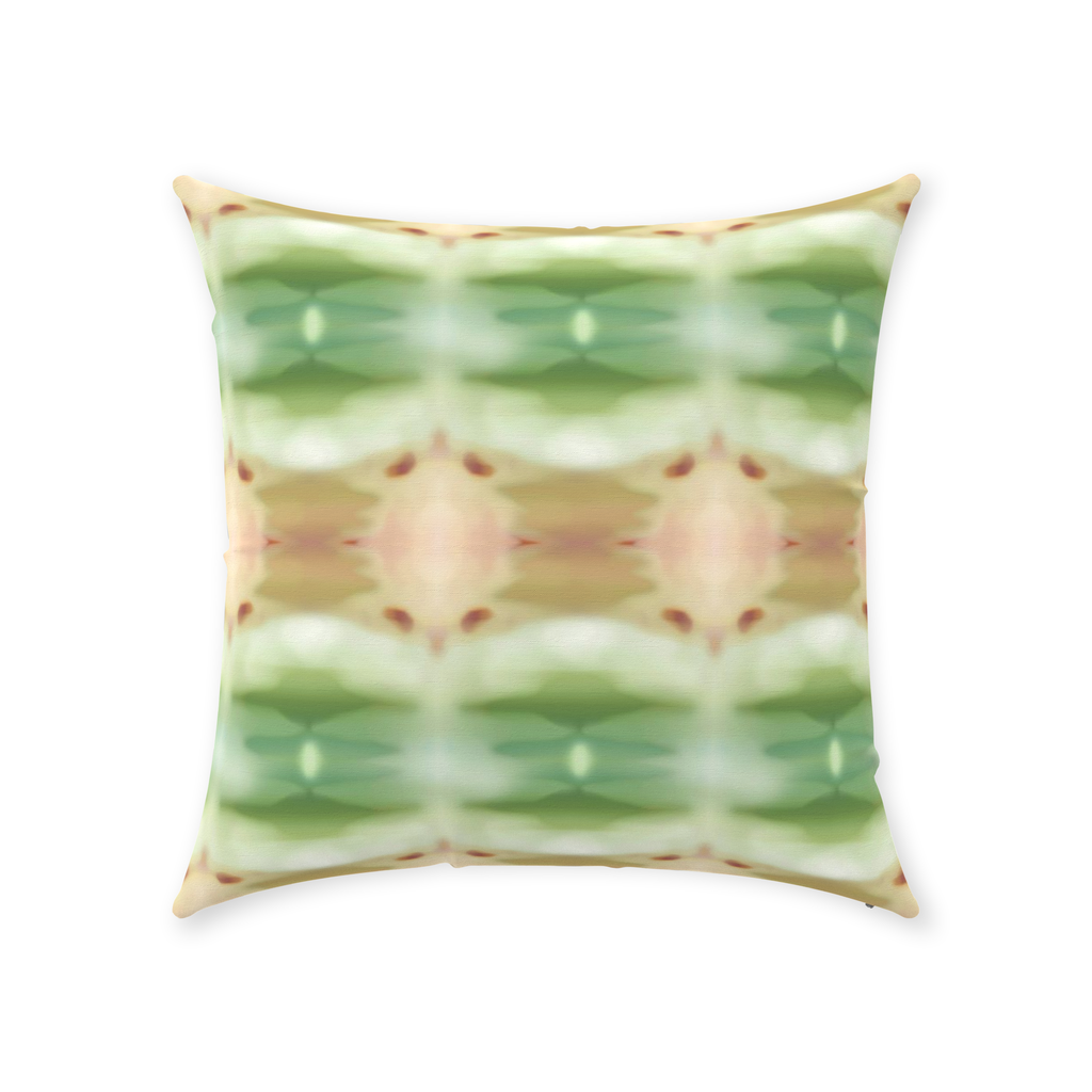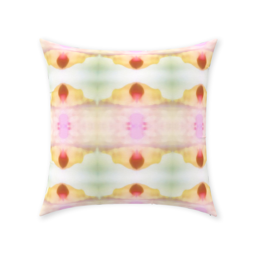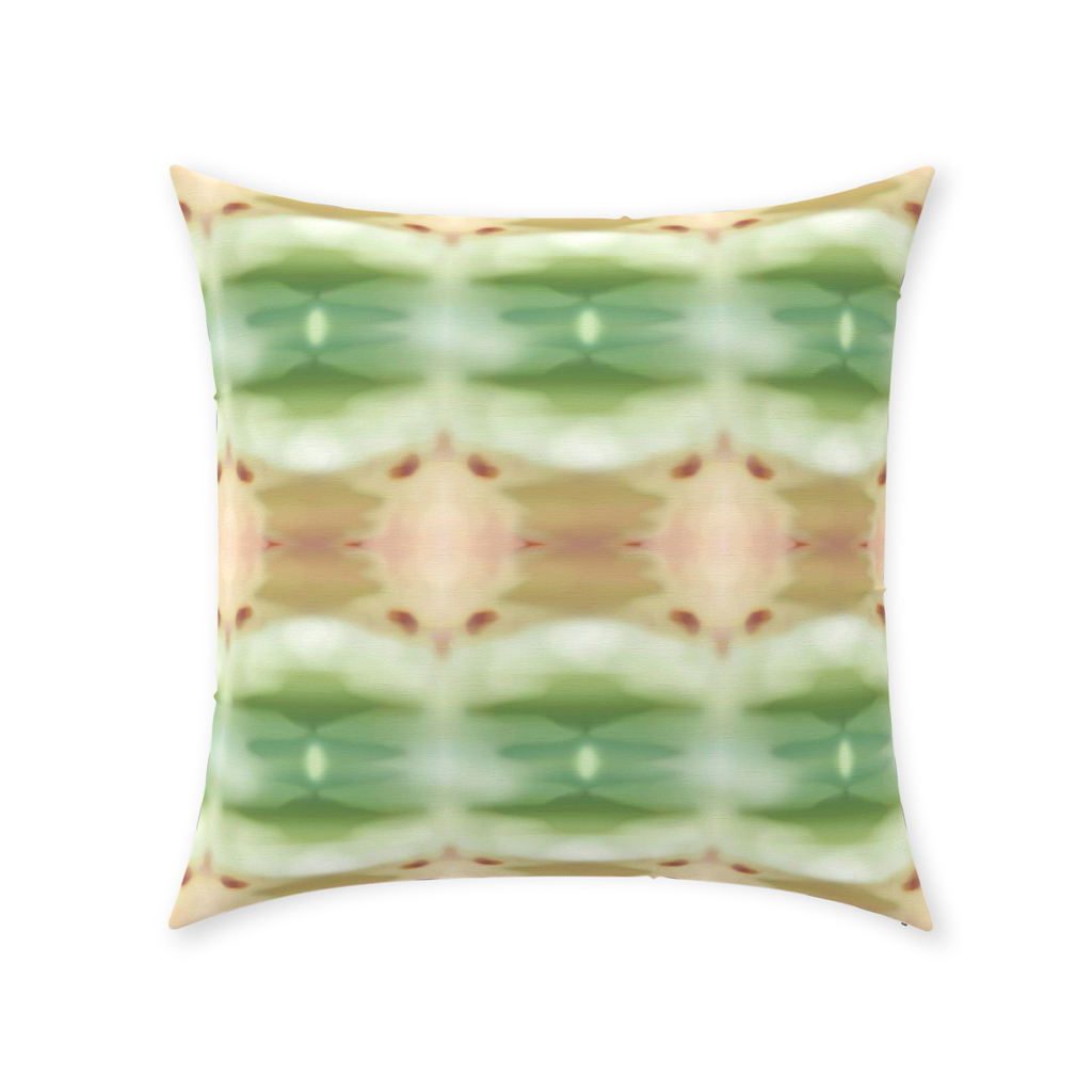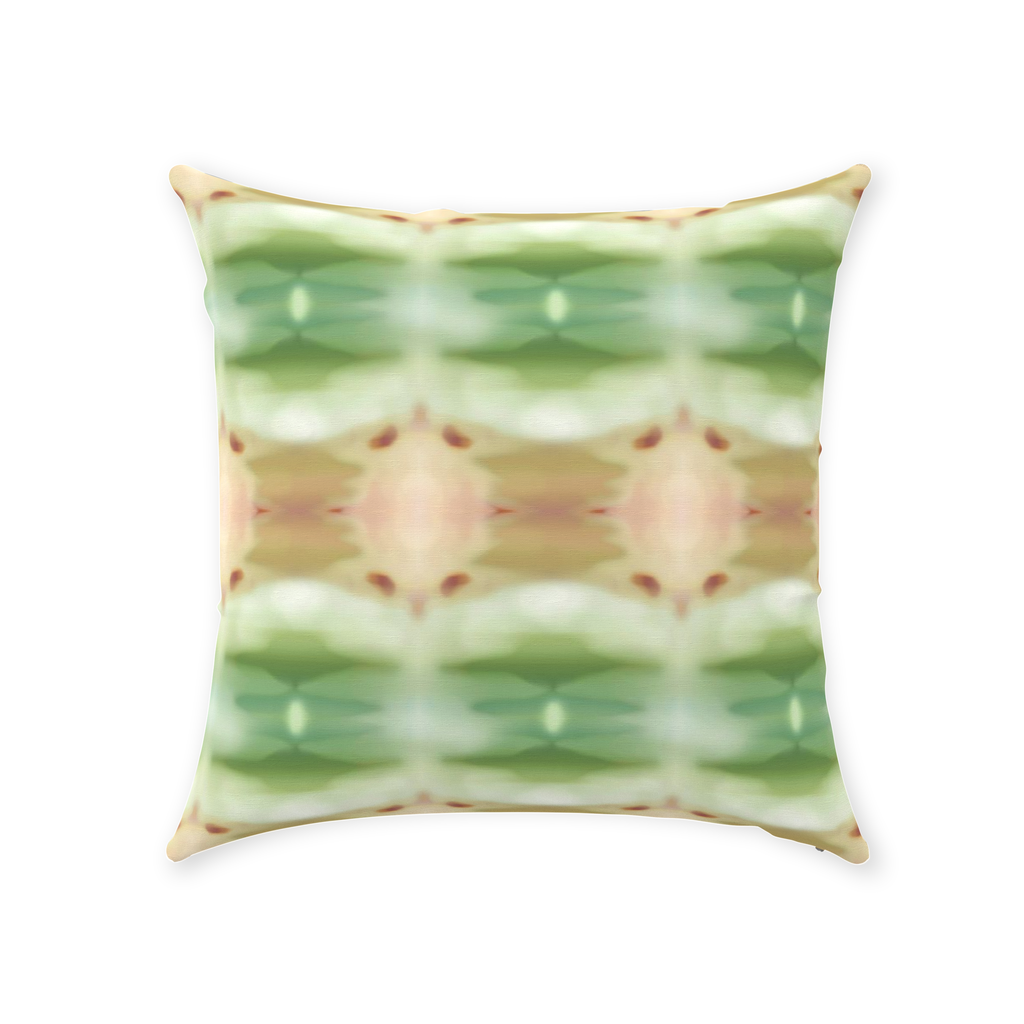 Pastel, watercolor inspired print, warm pinks & peaches on one side, with soft greens and beige on the other.