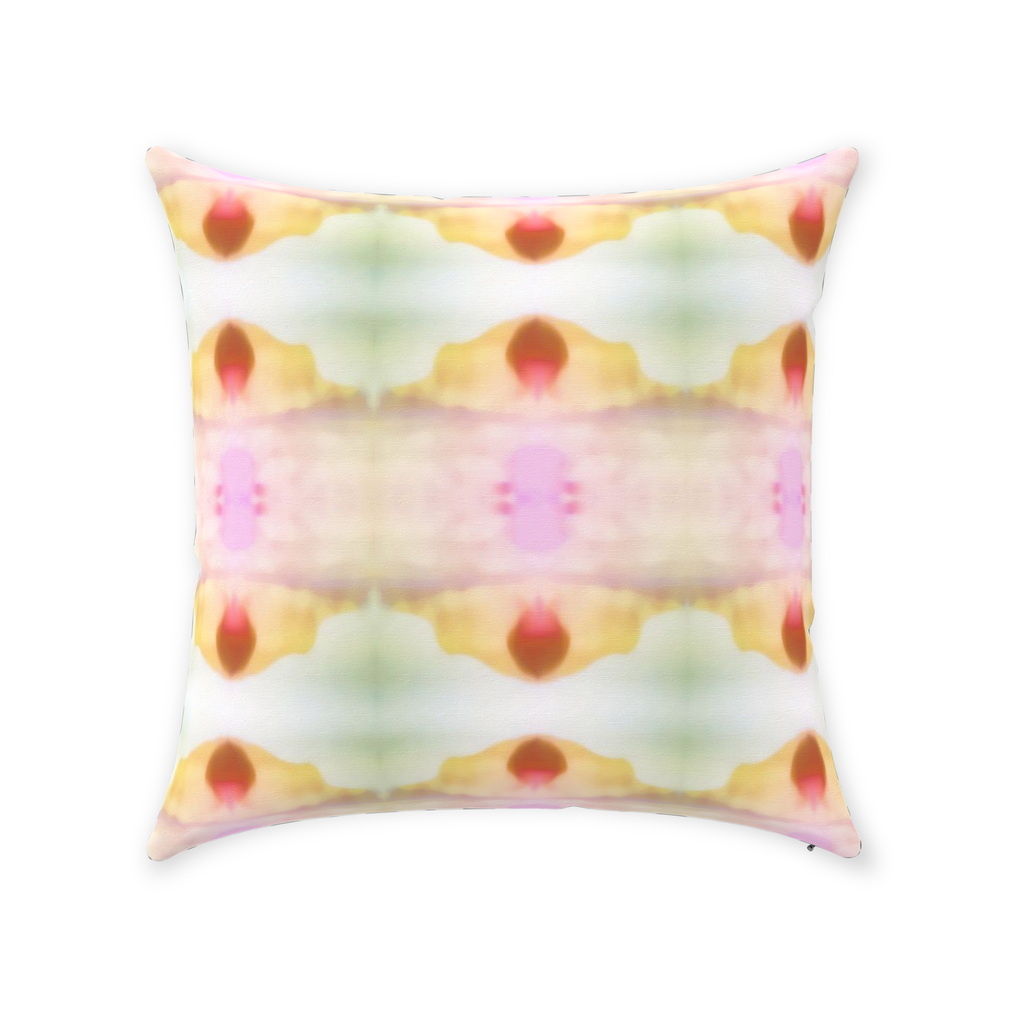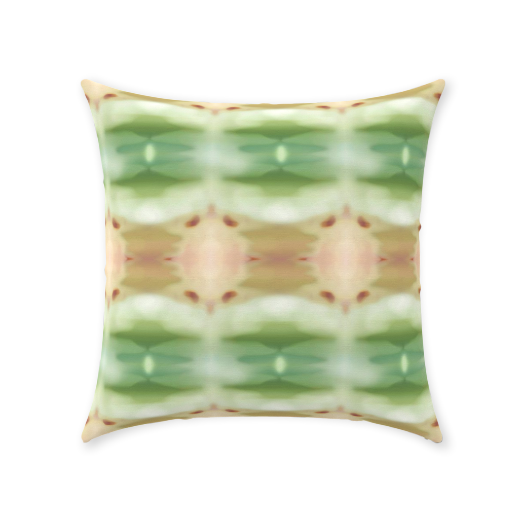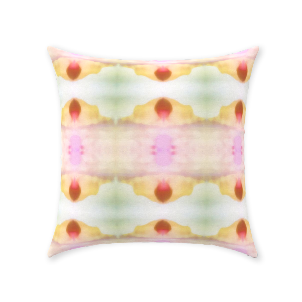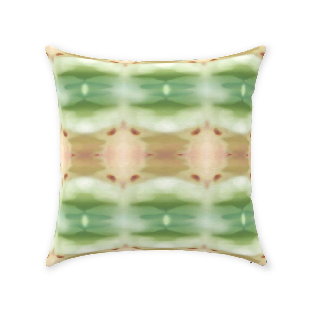 Pastel, watercolor inspired print, warm pinks & peaches on one side, with soft greens and beige on the other.