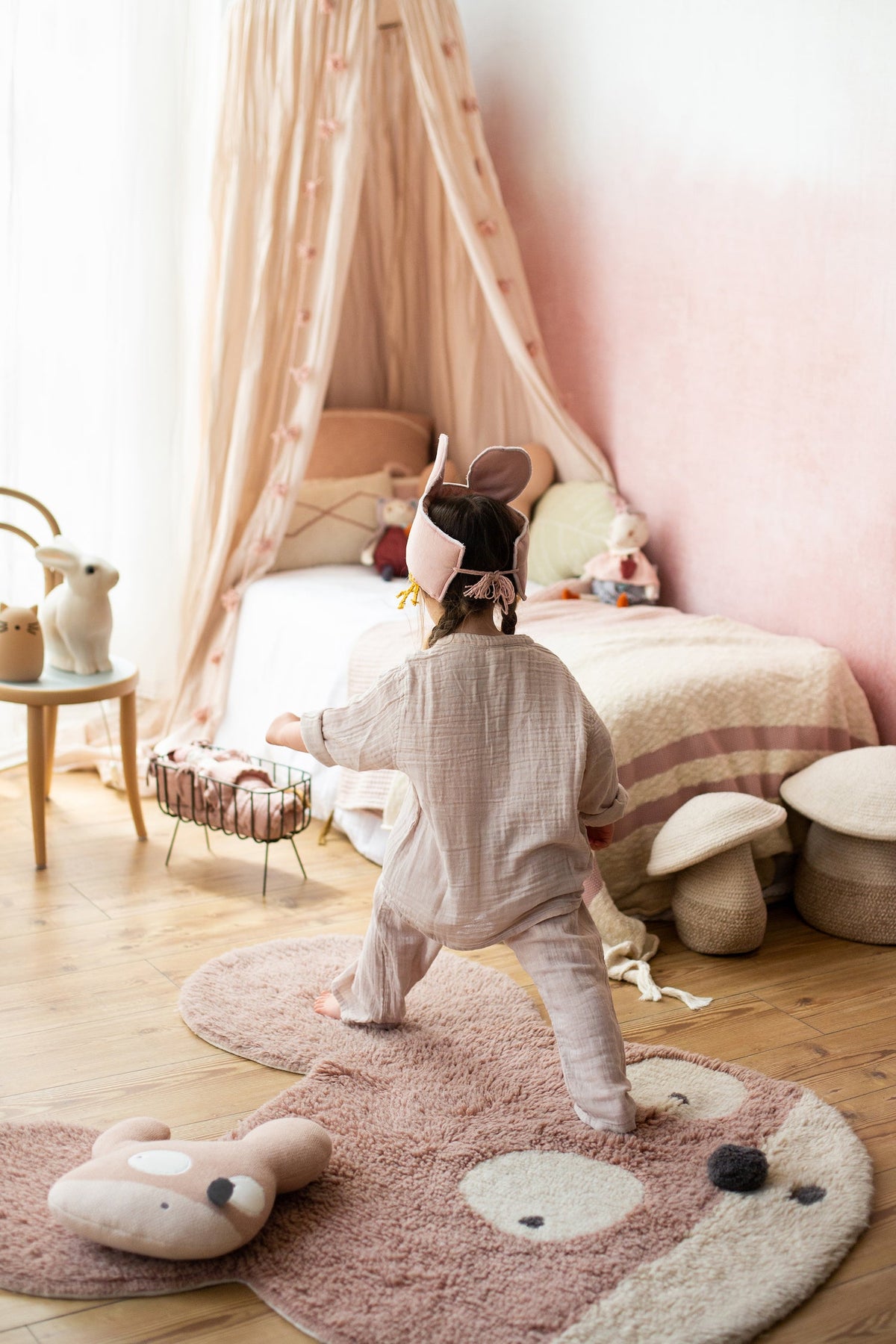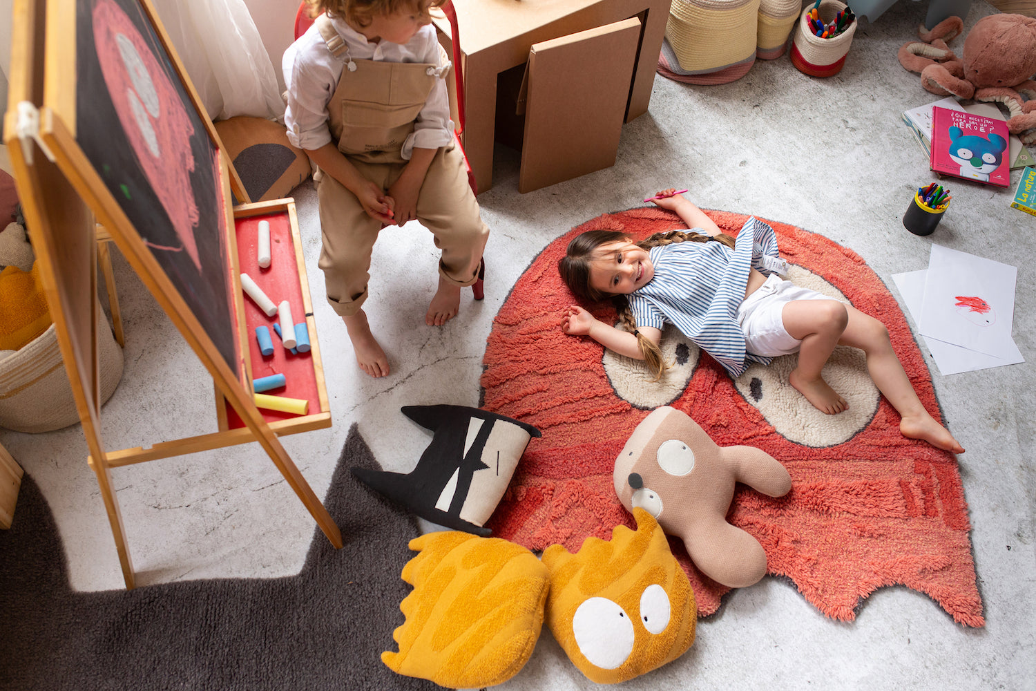 Get empowered with Edgar Plans’ superheroine mouse character that invites little ones to shine and pursue their wildest dreams. An ideal washable cotton knit throw pillow to decorate kids’ rooms with an urban, artsy vibe. Combine it with the matching rug for the perfect pairing. This throw pillow is Oeko-tex® certified