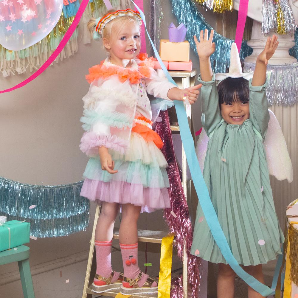 - Lined tulle with mauve, mint, lemon & coral ruffle detail