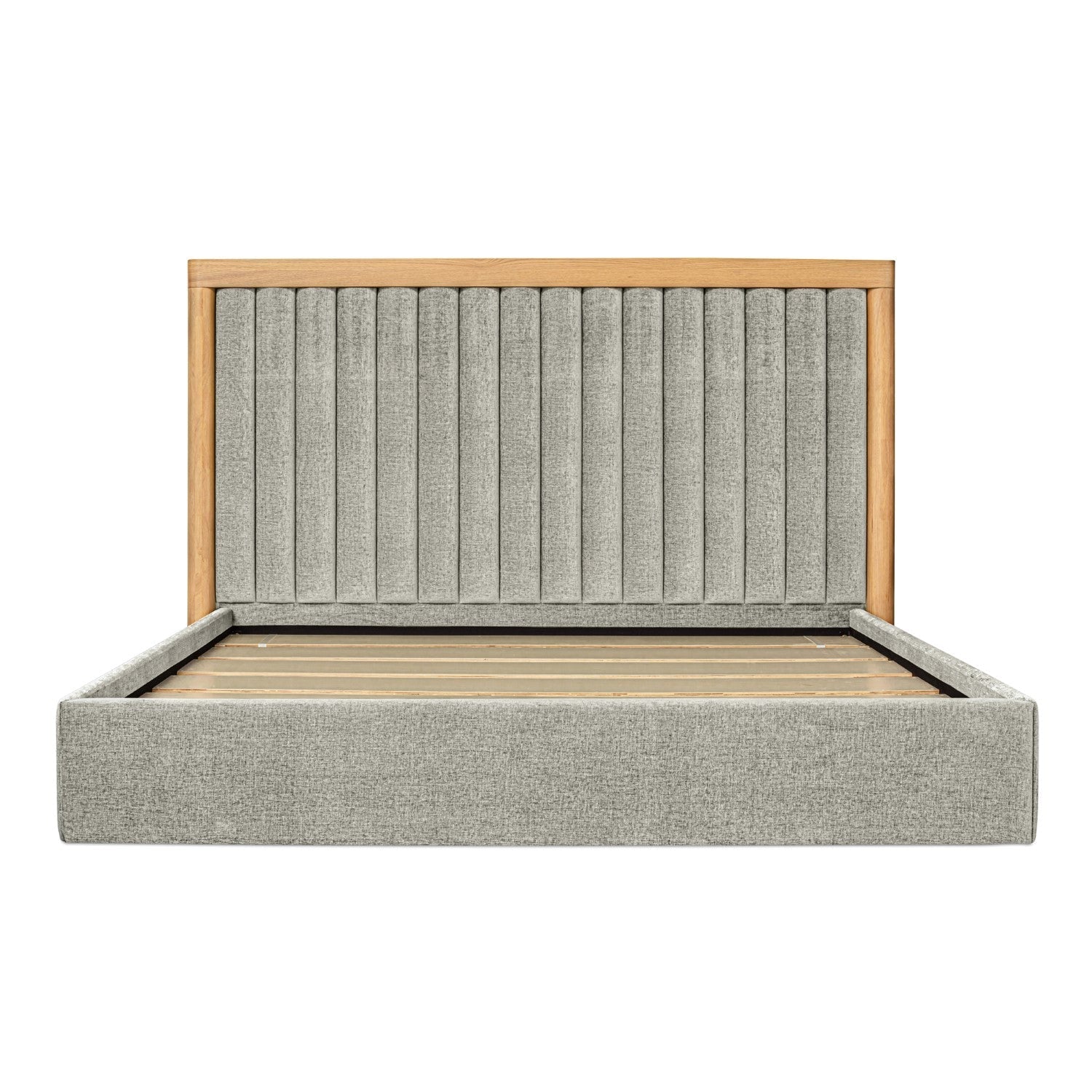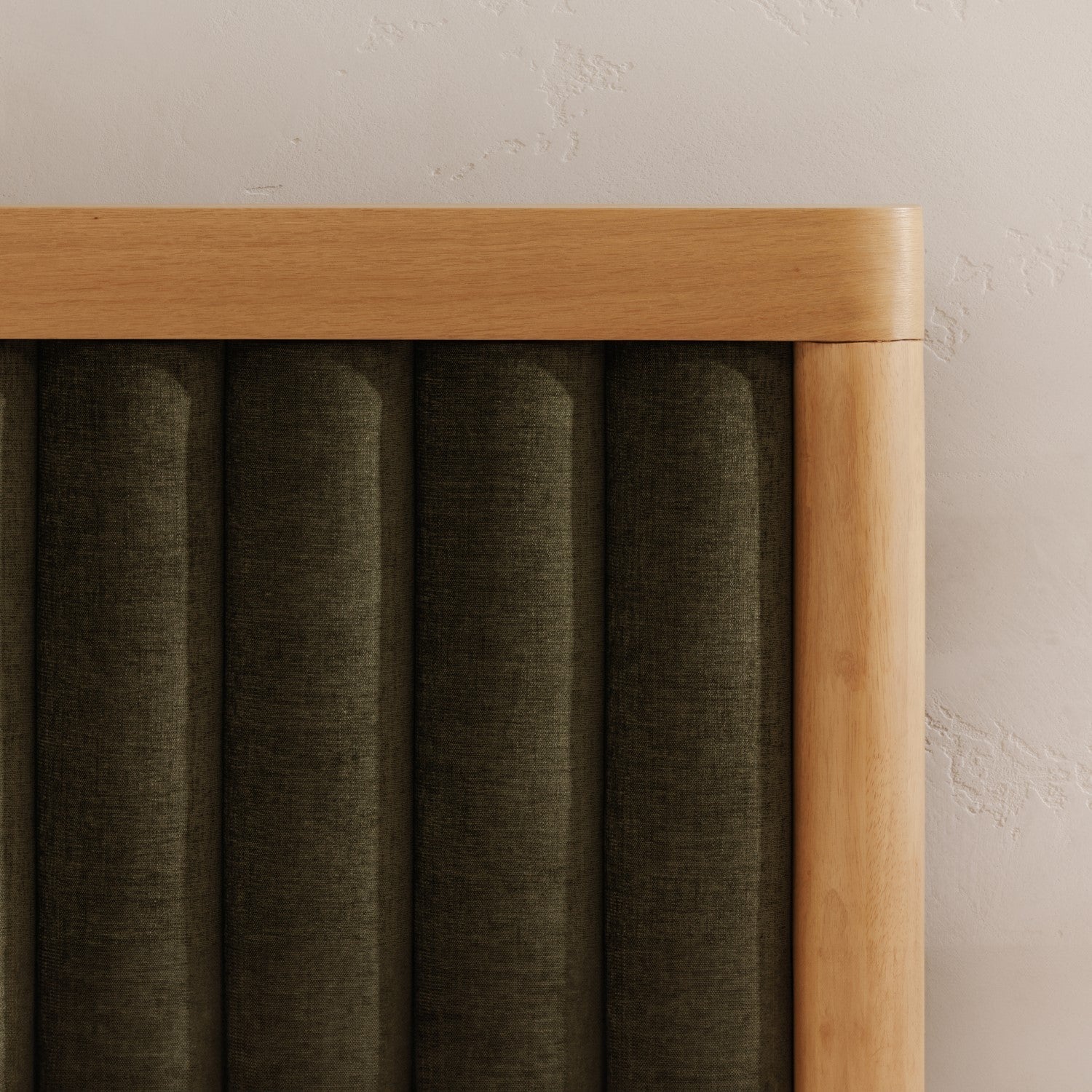 Drawing from the allure of brutalist buildings, the Nina bed features a three-dimensional pattern reminiscent of monumental structures like St. Joseph's Hospital in Tacoma, Washington. Lines of fabric wrap other lines behind cylindrical geometries, evoking intrigue and warmth - cozy elegance meets modern design.