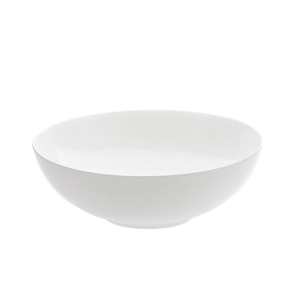 Our Oyyo White large serving bowl looks just as stunning while holding a salad as it does holding popcorn placed on a coffee table. Oyyo's focus on curve and flow in brilliant white bone china is contemporary without being trendy. Fired at nearly 2,400F, Oyyo White is highly durable. Dishwasher safe.