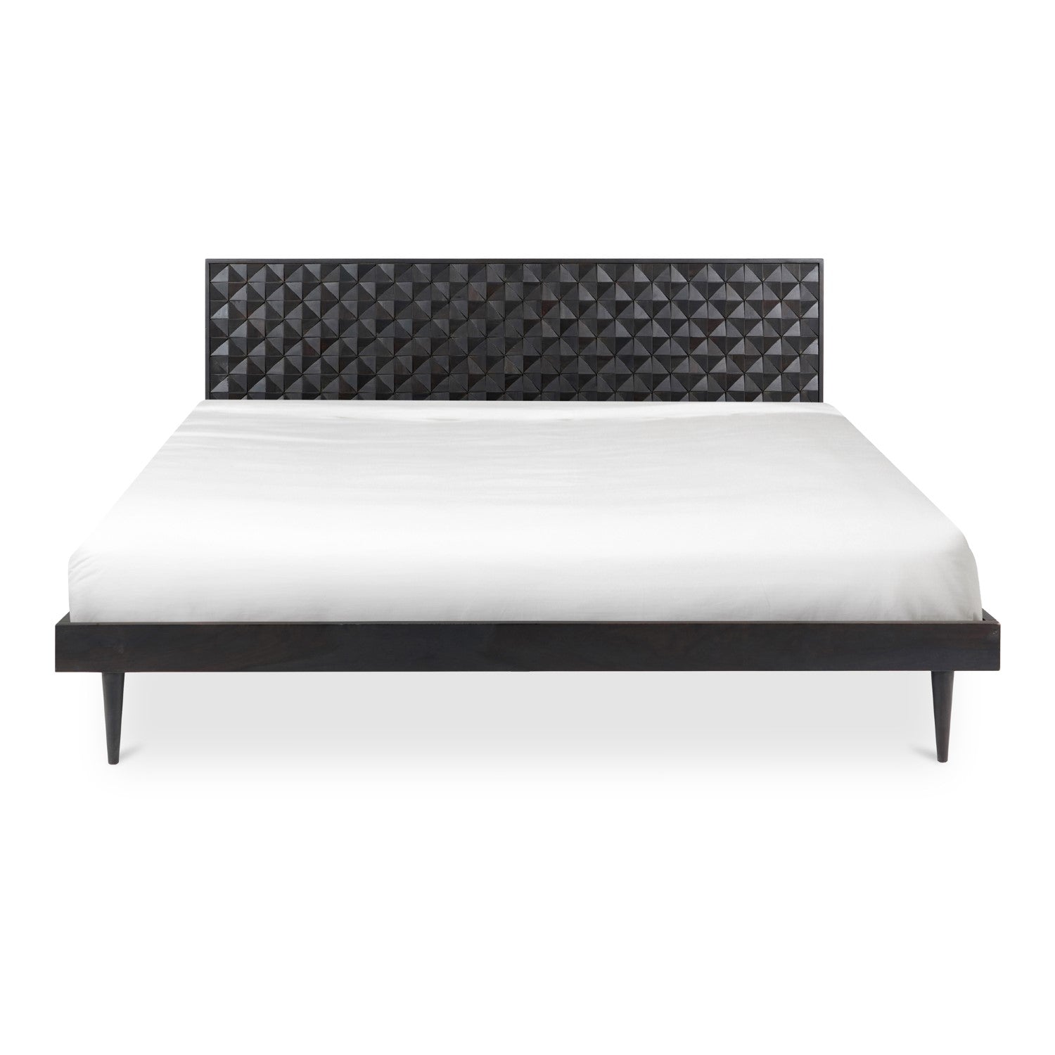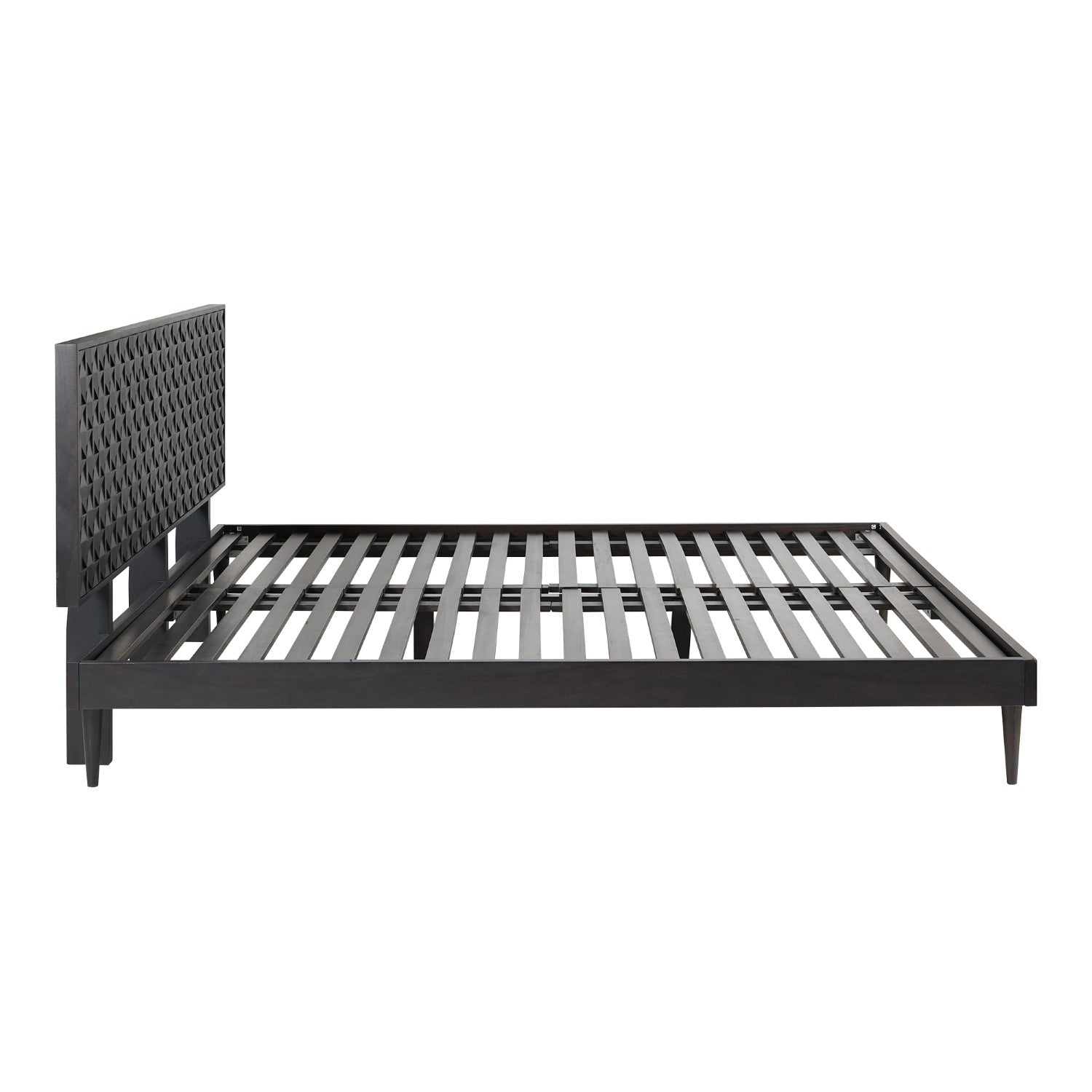 Crafted in solid Sheesham wood with a black finish, the Pablo bed features an intricately designed headboard with each piece carefully arranged by hand. The texture and visual intrigue of the detailed headboard are underscored by the organic beauty of the natural wood, adding inviting warmth to the bedroom.