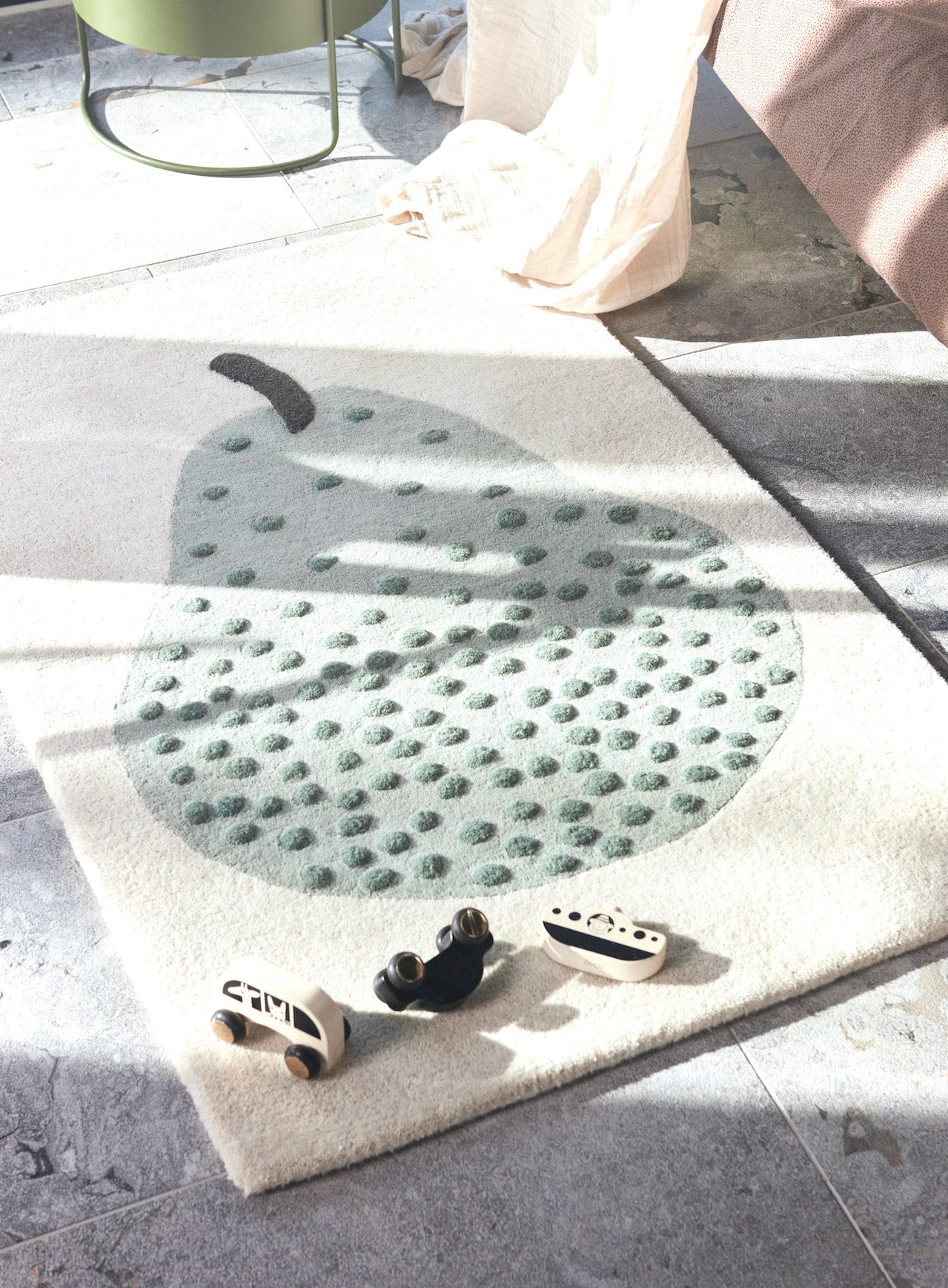 This new variety is made in a tufted quality like the popular Lion Rug, Koala Rug, etc. but we added a little something extra for the senses – the Pear is made with a 3D effect to give the rug tactile properties and stimulate the little ones.