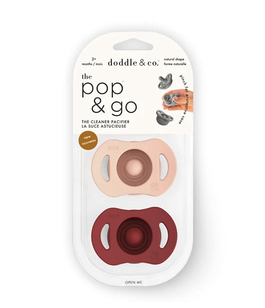 It's doddle & co.'s new pacifier designed for older babies 3+ months, designed to NOT pop when it drops - you can manually pop the nipple back into its bubble, for case-free carrying. With a firmer bubble, designed to hold its position even when baby plays with it. This gives you and active baby better control!