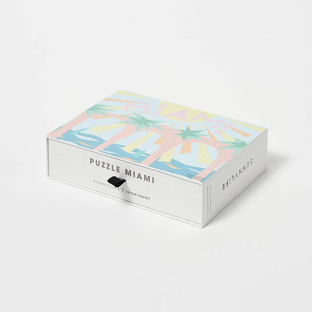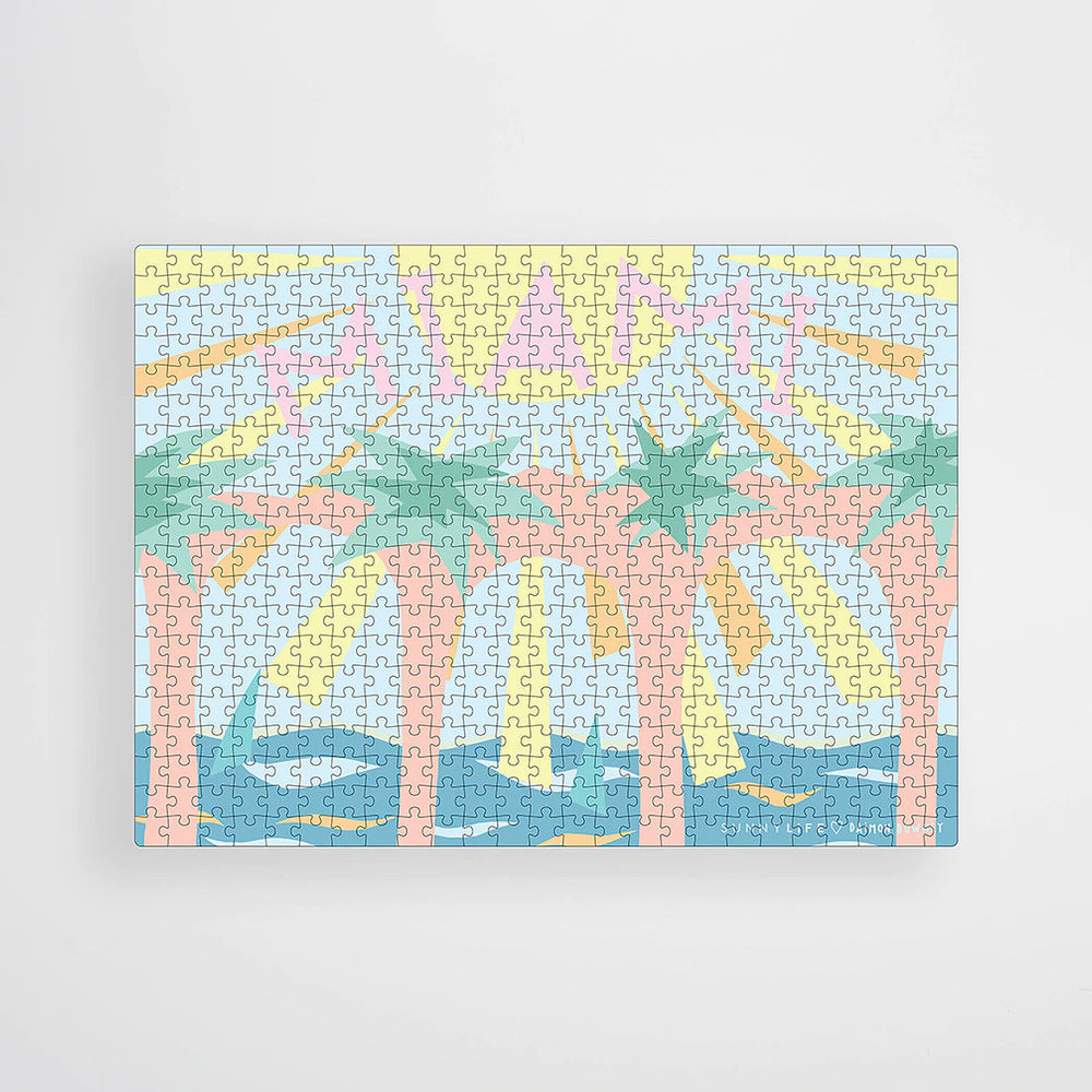 This year SUNNYLiFE collaborated with Sydney-based artist and musician, Daimon Downey. With his kinetic abstract strokes and cut-out collages and his powerful primary colours, Daimon's painterly designs activate our 500 piece Puzzle of summer in Miami, Capri. and Bondi.