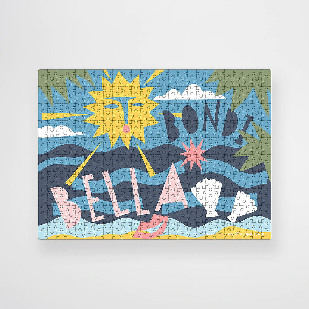 This year SUNNYLiFE collaborated with Sydney-based artist and musician, Daimon Downey. With his kinetic abstract strokes and cut-out collages and his powerful primary colours, Daimon's painterly designs activate our 500 piece Puzzle of summer in Miami, Capri. and Bondi.