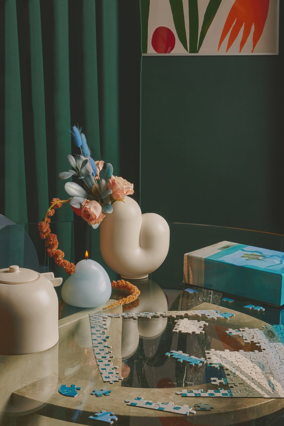 This puzzle within a puzzle by Areaware features beautiful dream-like photography by KangHee Kim. KangHee has layered various photographs taken in New York City and around the U.S. to create new and imagined spaces in this series of artful puzzles. The photograph embedded inside each larger image is made up of diagonal puzzle pieces, while horizontal pieces make up the larger 'exterior' jigsaw puzzle.