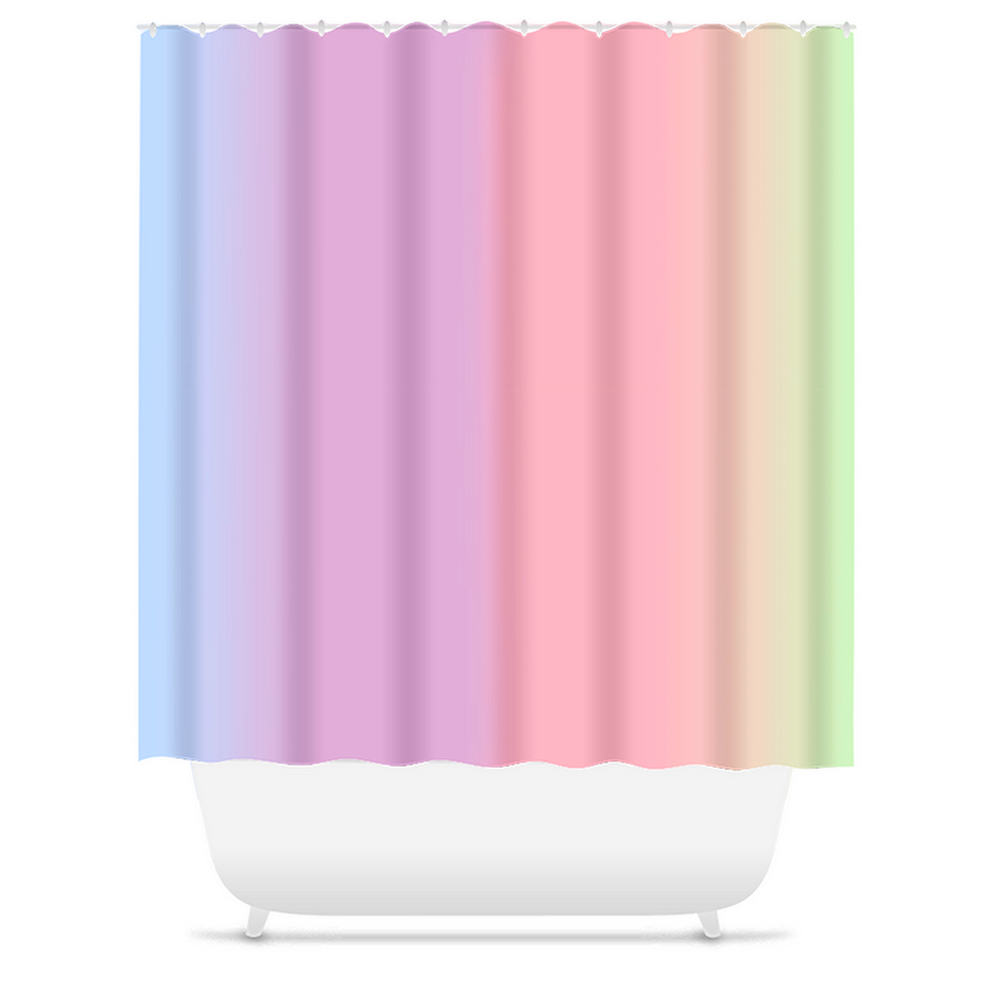 Create a peaceful positive vibe every morning in your bathroom with our Rainbow Shower curtain. This pastel ombre shower curtain is an easy way to introduce lush color into your bathroom.