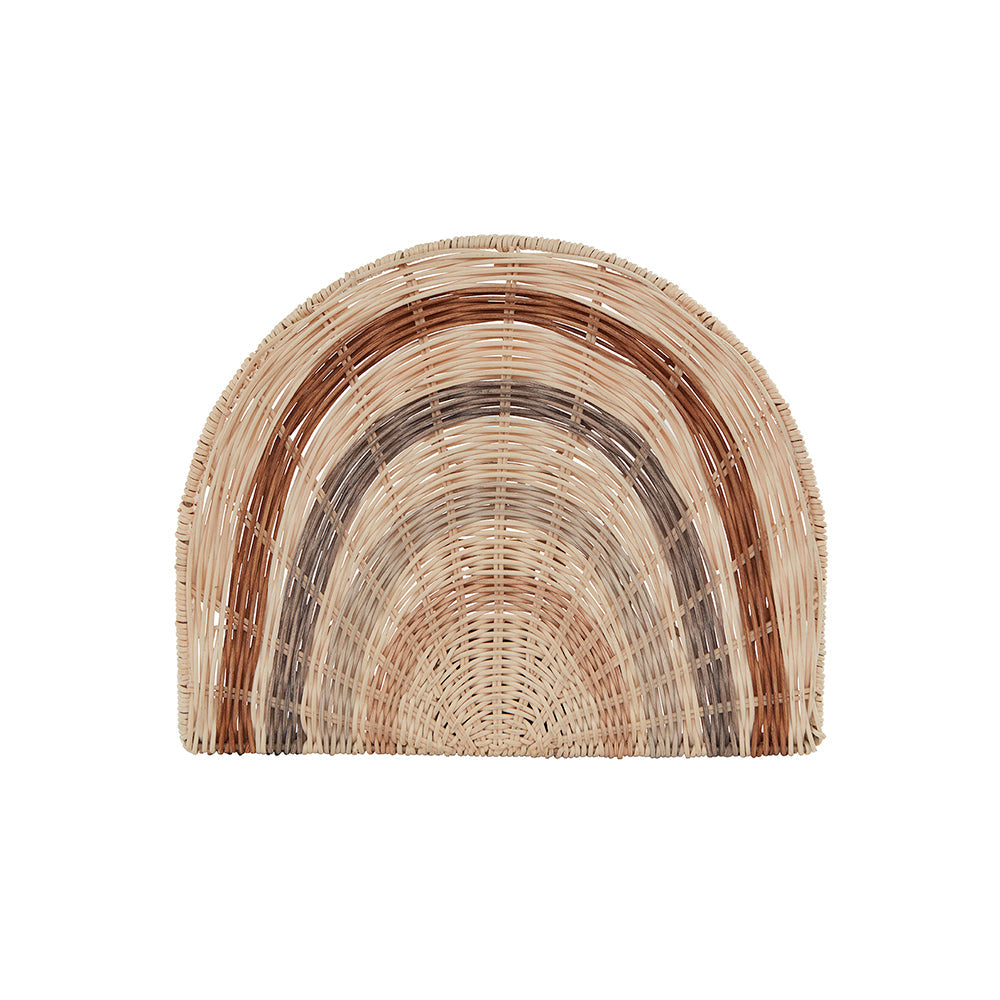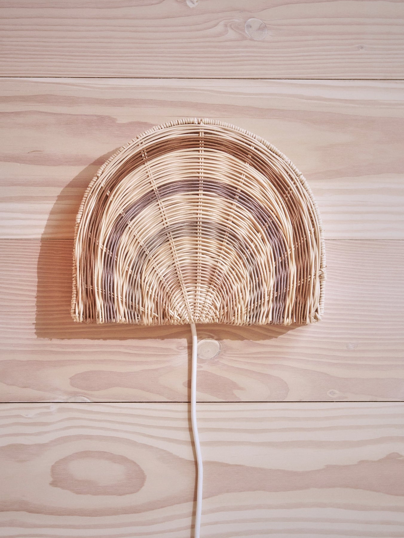 The Rainbow Wall Lamp is designed in OYOY's characteristic rainbow shape. It is made of braided rattan, so the light from the bulb shines nicely through the rainbow. The lamp can hang by the bed and give light to the child during cuddling, just as it can hang for decoration anywhere in the room.