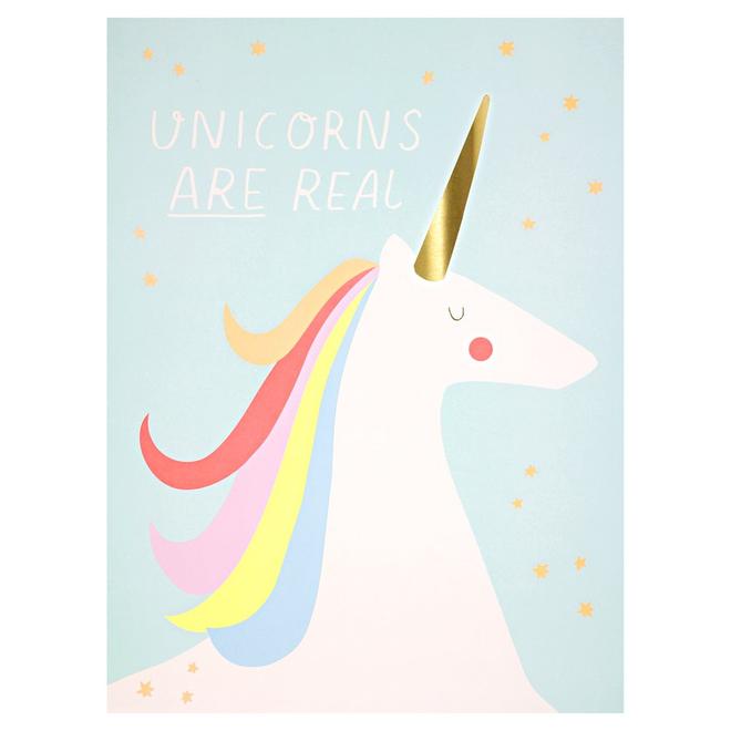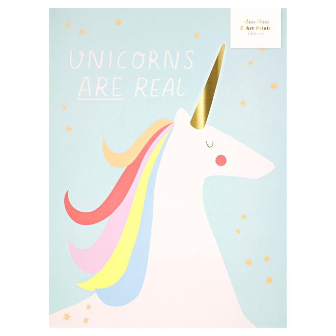 Add a touch of wonder to any little one's bedroom with this pair of art prints. Featuring a sweet unicorn and a cheerful rainbow in bright colors with gold foil detail. Mount these prints in a free-standing frame or hang them on a wall - either way, they'll look amazing.