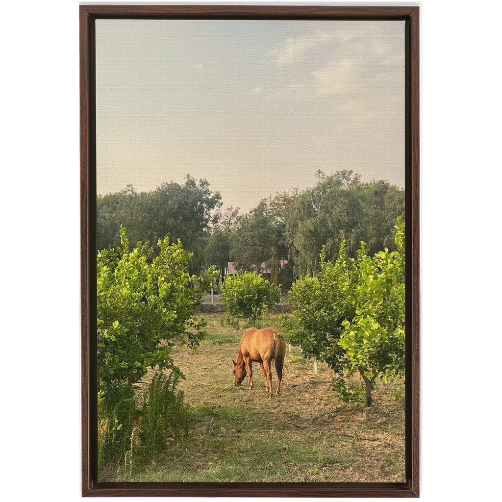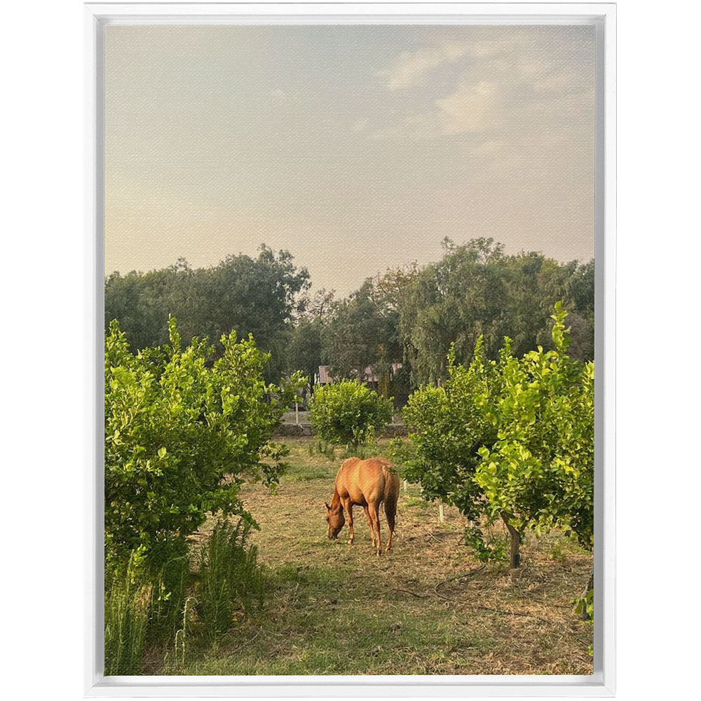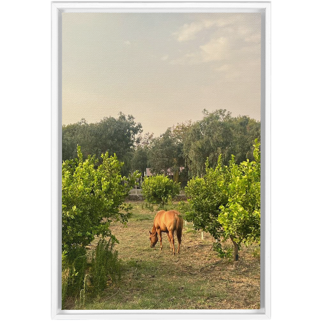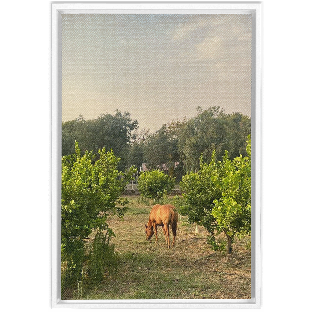 Ready to hang canvas print media is acid free with a medium texture and scratch-resistant finish. Solid wood frame, fully finished backing, with corner bumpers for level hanging and to protect your wall. Easily wipes clean with a damp cloth.