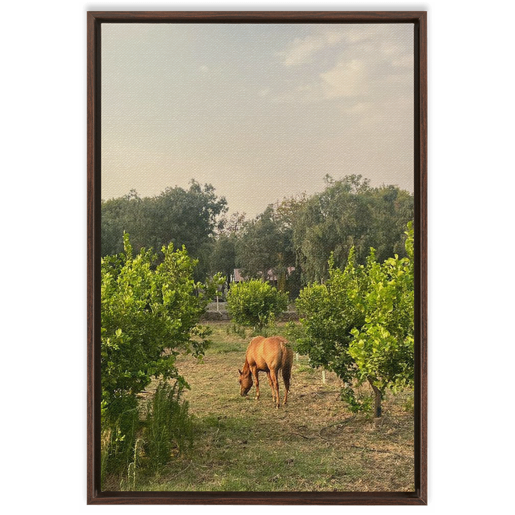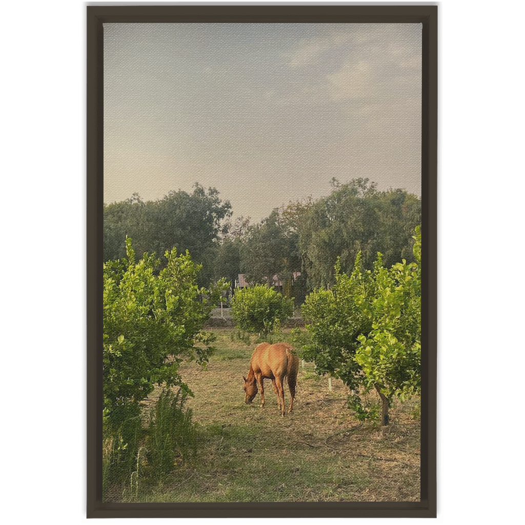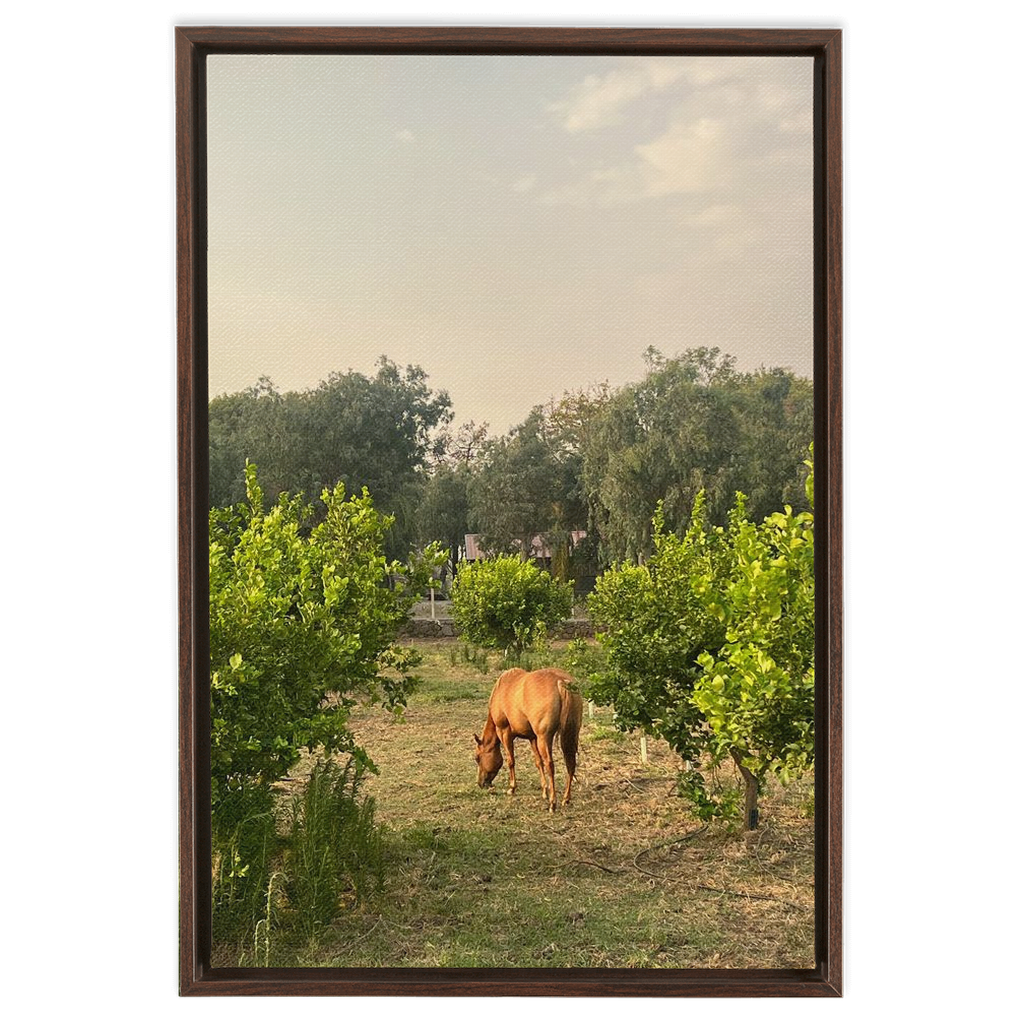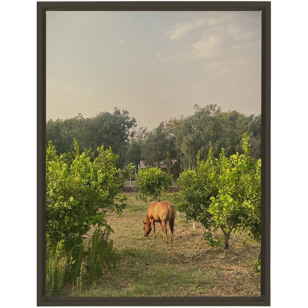 Ready to hang canvas print media is acid free with a medium texture and scratch-resistant finish. Solid wood frame, fully finished backing, with corner bumpers for level hanging and to protect your wall. Easily wipes clean with a damp cloth.