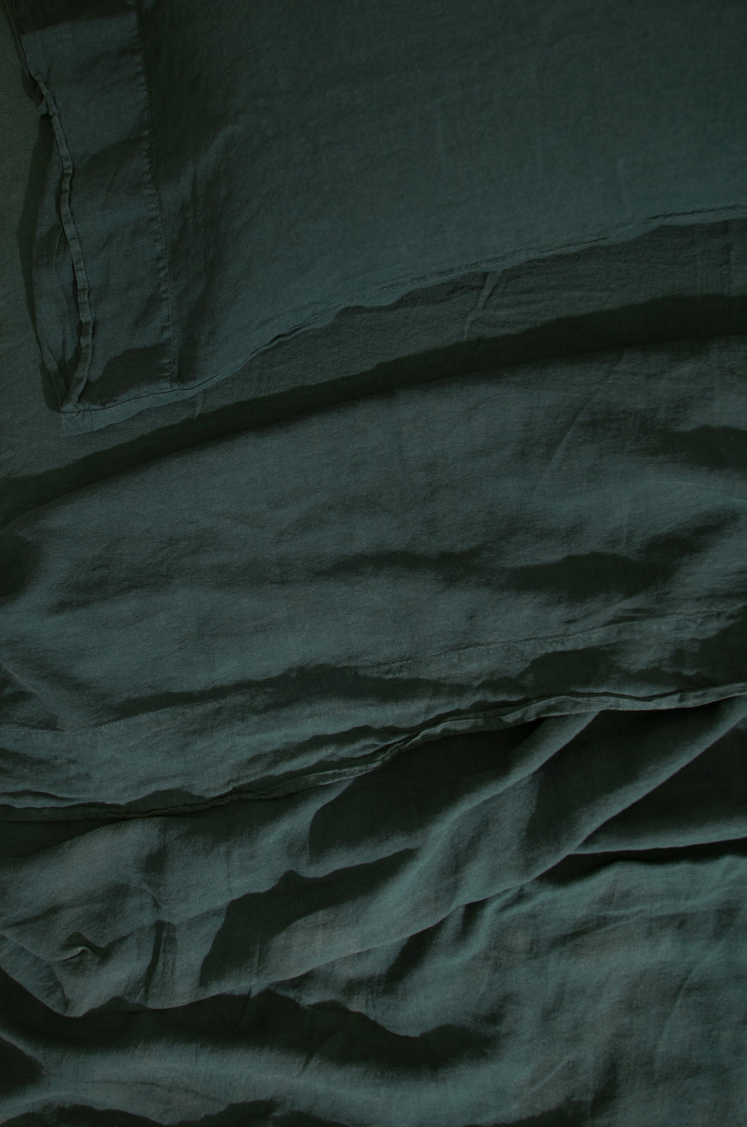 The Simple Linen Bedding Collection is the epitome of luxury. Made of Belgian linen, finished, woven and stonewashed in Portugal, the collection has a relaxed, lived in look. Linen is our favorite choice for bedding as it is both breathable and soft, keeping you cool in the summer and warm in the winter. Sizing is generous, and details are kept simple. The Duvets feature Mother of Pearl buttons for the hidden closures, and corner ties to allow your comforter to stay in place. Pillows feature an envelope closure, and the fitted sheets are designed for deep mattresses, but have elastic around all four sides to accommodate most mattress depths. We like the visual rumpledness of our linen. It's perfect all year round. The entire collection is available in Queen or King sizing, in twelve color ways, and is sold open stock to allow for mixing and matching of colors.