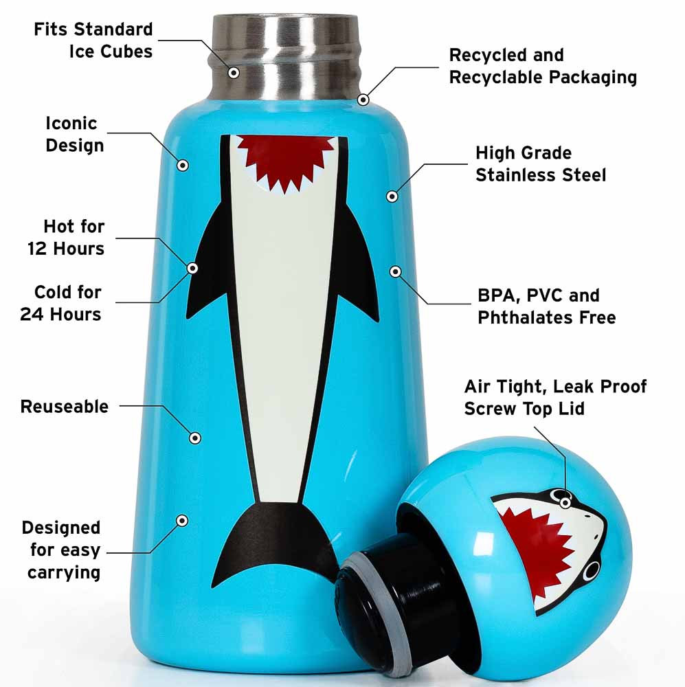 Sip in style with this Skittle Mini Water Bottle-- perfect for little ones toting drinks on-the-go! Featuring a bumble bee, panda, and shark, it's the coolest, cutest way to stay hydrated. No doubt this bottle will be the fun of the party!