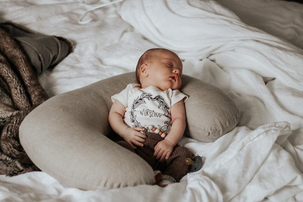 A must have for feeding and tummy time, cover your nursing pillow with a 100% linen slipcover in a medium gray, Slate.