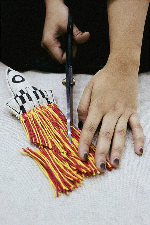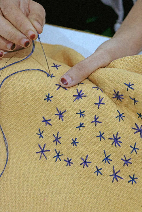 Learn about our Solar system and space travelling! The Space book will introduce your little ones to the world of the planets. This sensory book is carefully handcrafted mixing colorful cotton canvas fabrics with embroidered details. From hand-embroidered stars on the front page, to a fluffy tufted sun and planets on the inside. It is made by upcycling textile scraps from our own factory making it an eco-friendly choice for your kids decor. Unfold and take off on a journey with our mini rocket! Recommended age +3 years.