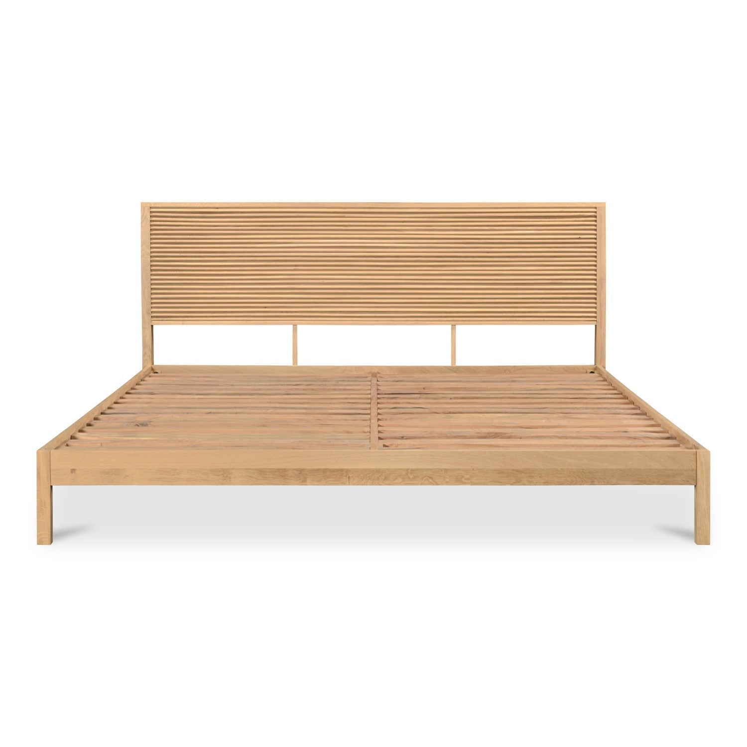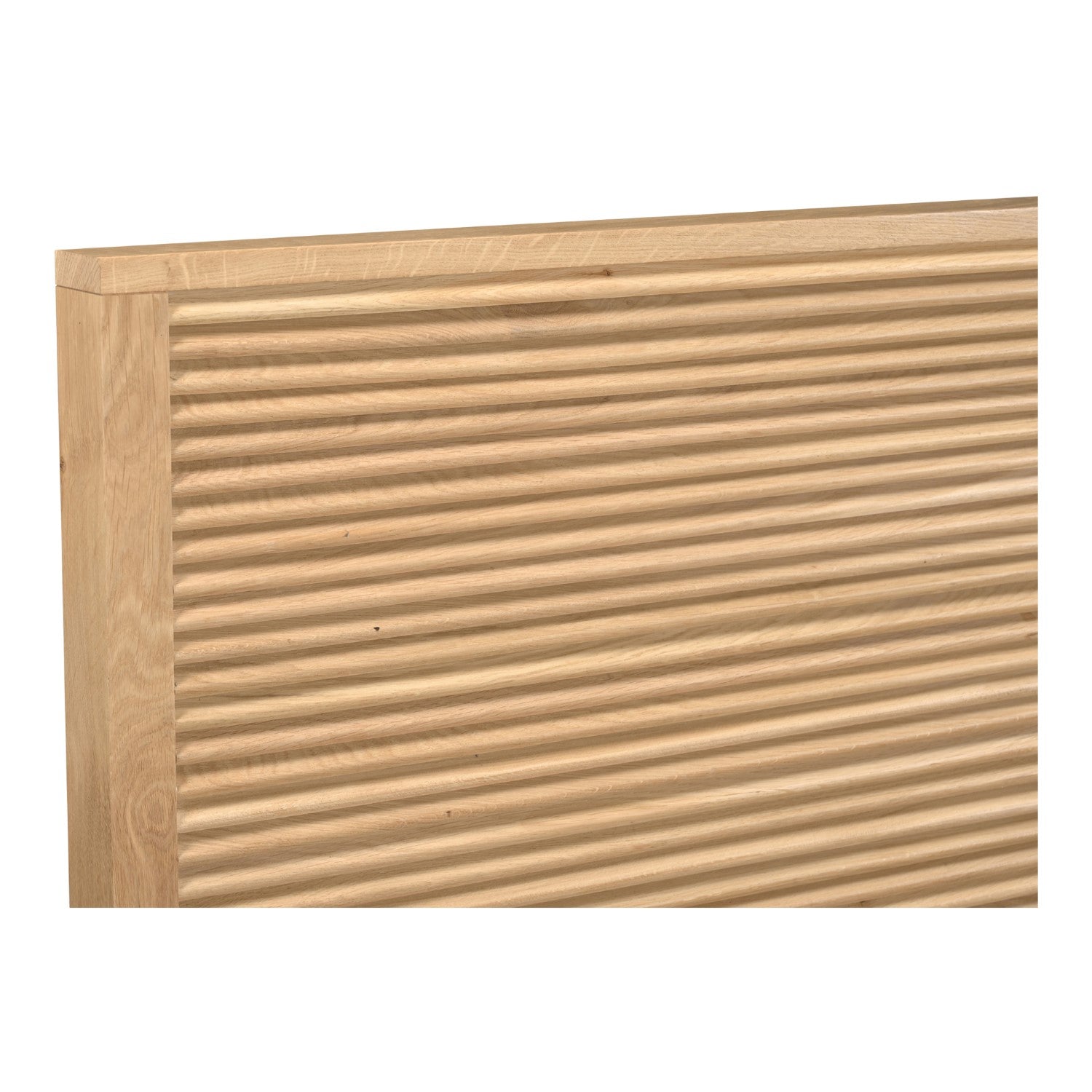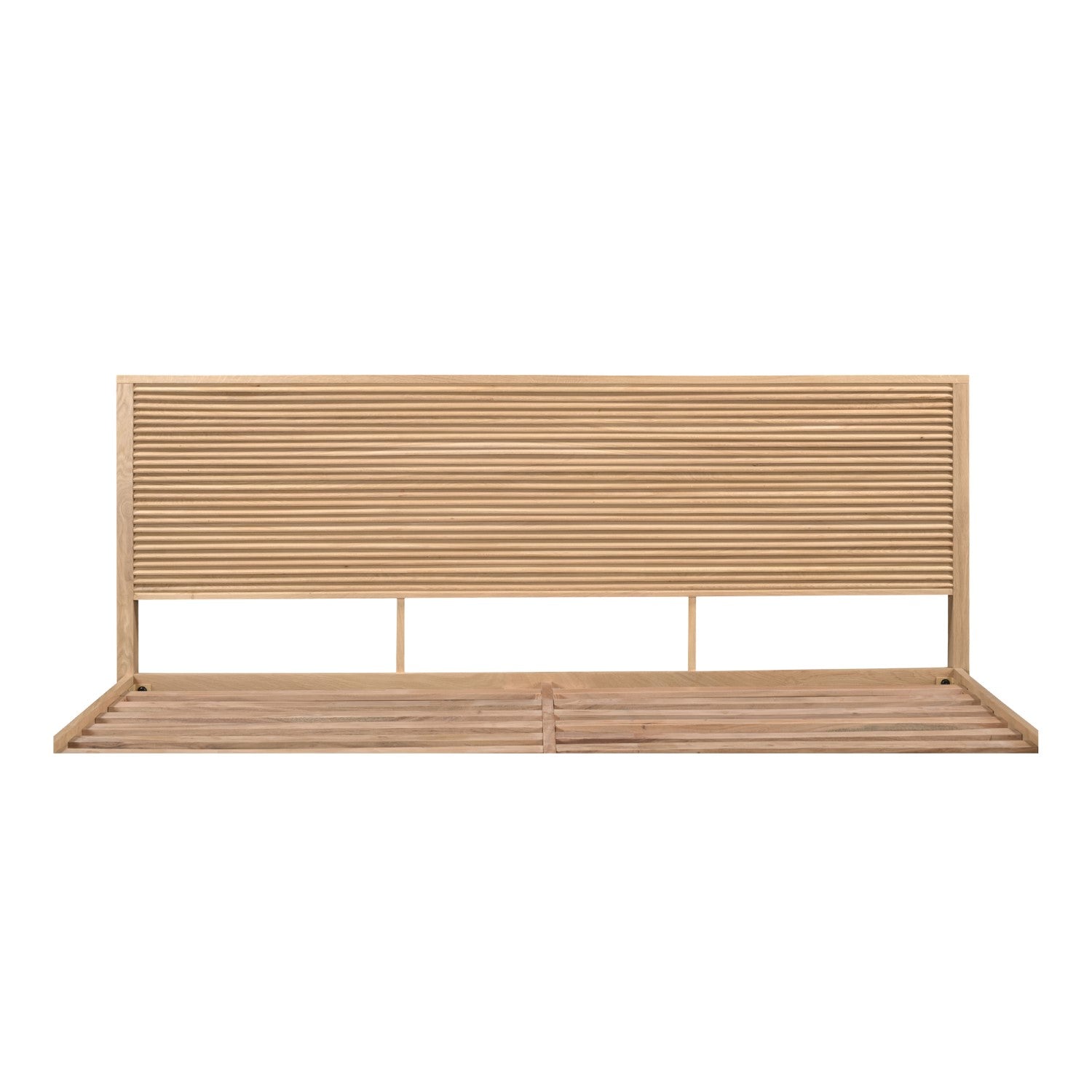 Inspired by the jalousie windows of Florida, the Teeda queen bed’s shutter-like headboard evokes memories of warm, tropical days where the aroma of freshly-picked oranges and sizzling BBQed prawns fill the air. Its clever arrangement of slats creates an exquisite play of light and shadow, a stunning visual element that adds depth and texture to any space. Crafted from solid oak, this bed exudes timelessness while providing plenty of visual intrigue.