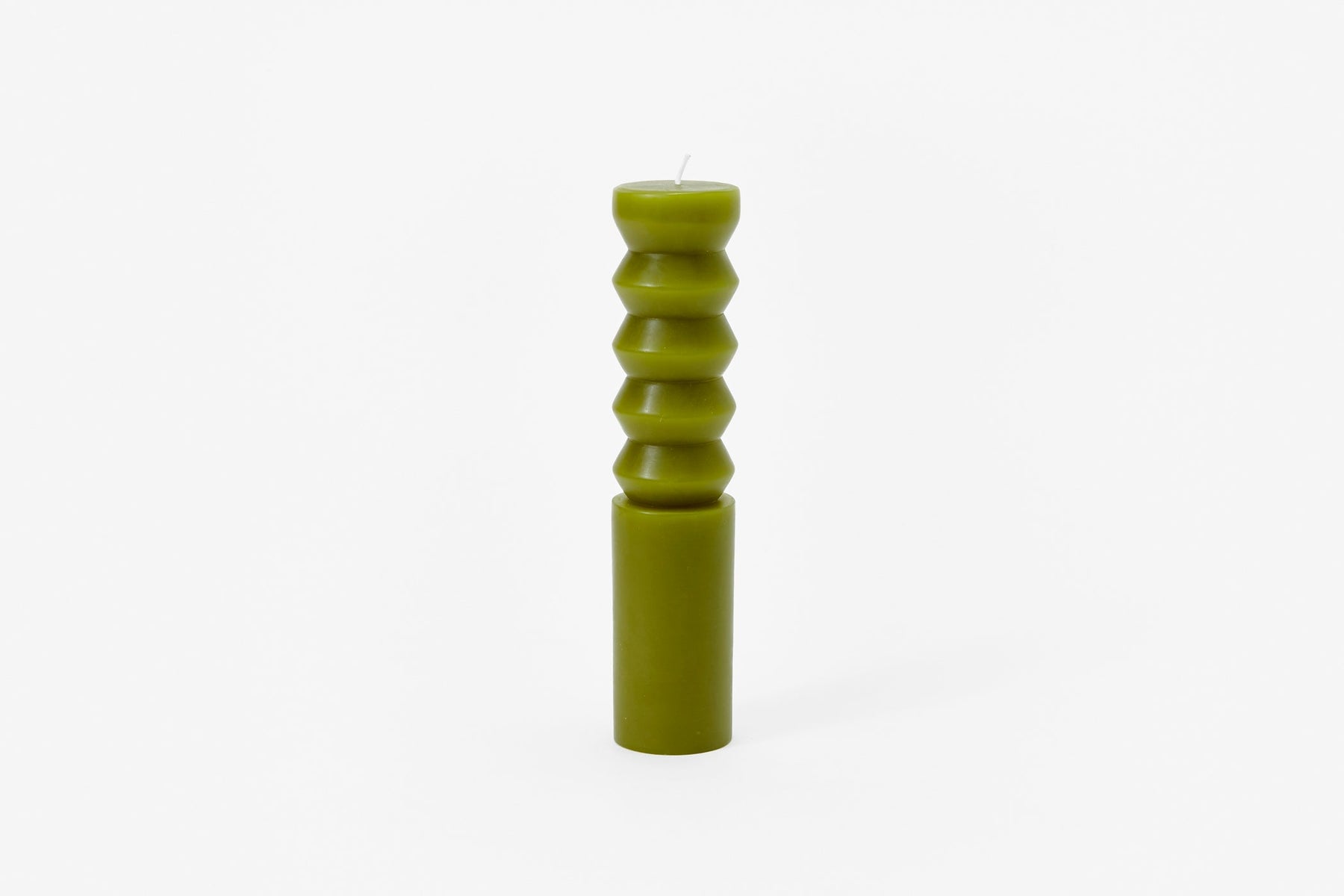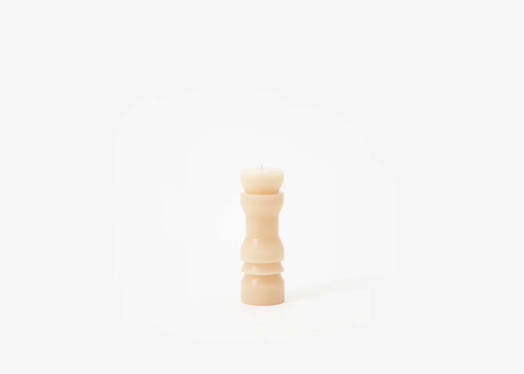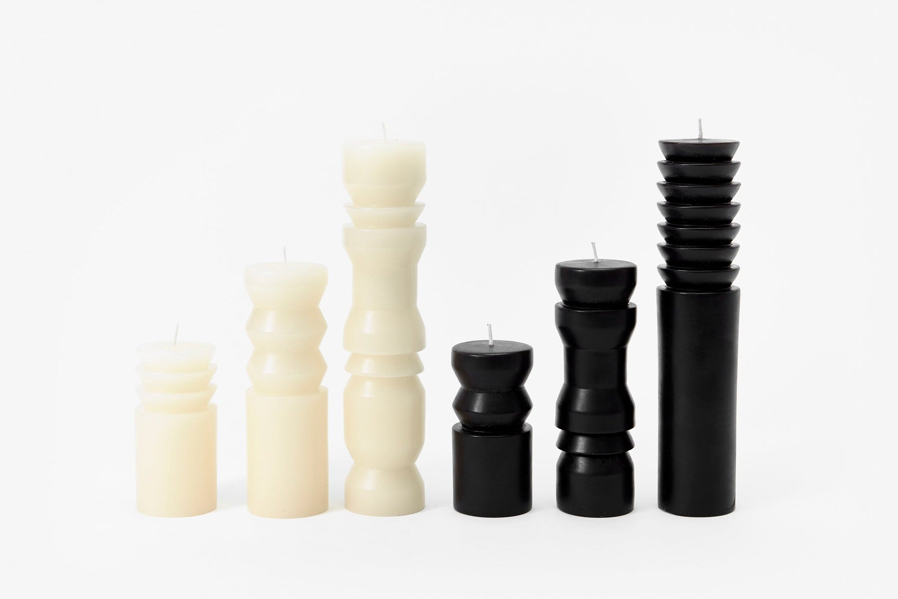 The Totem Candle is cast in unscented paraffin wax from forms originally created by turning beeswax on a lathe. Approximate burn time is 15/25/35 hours depending on the size of the candle. Do not leave burning candle unattended.