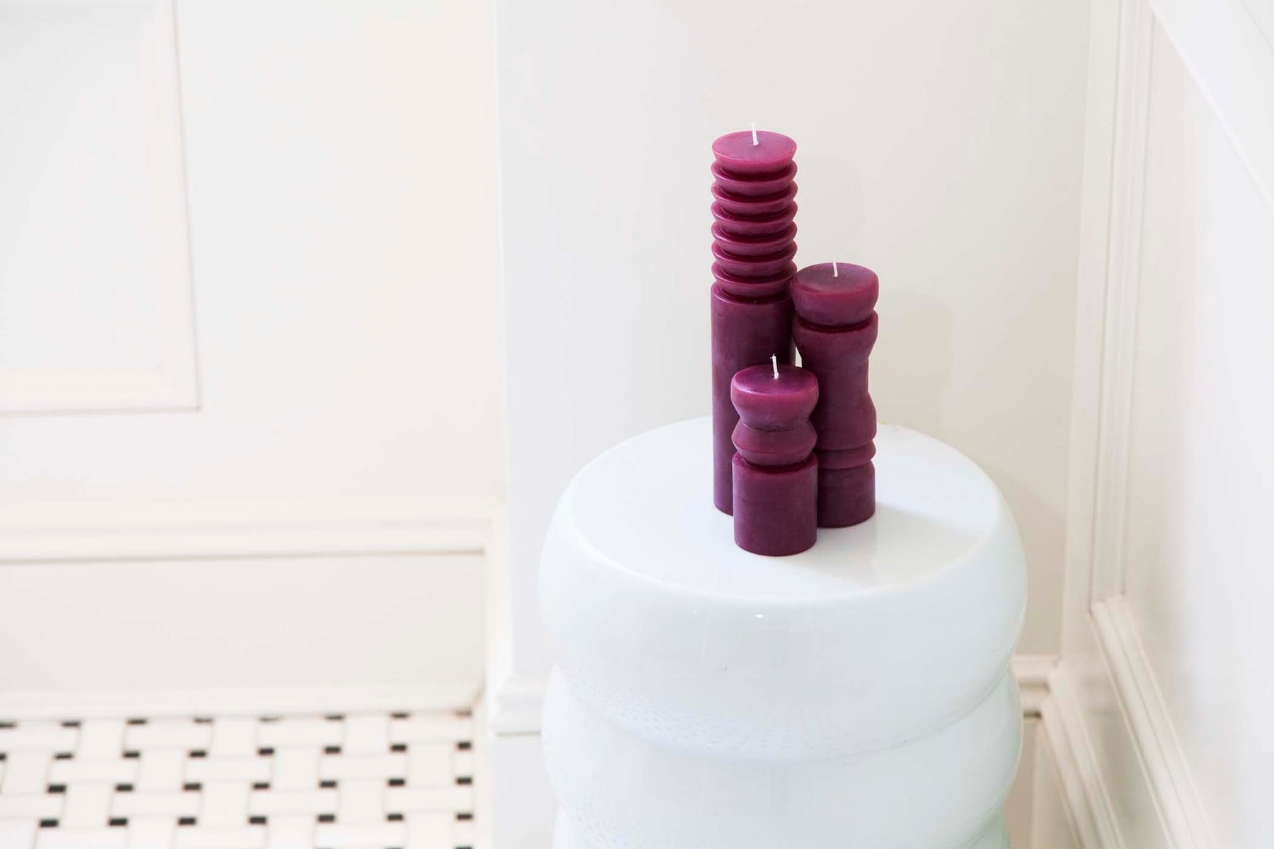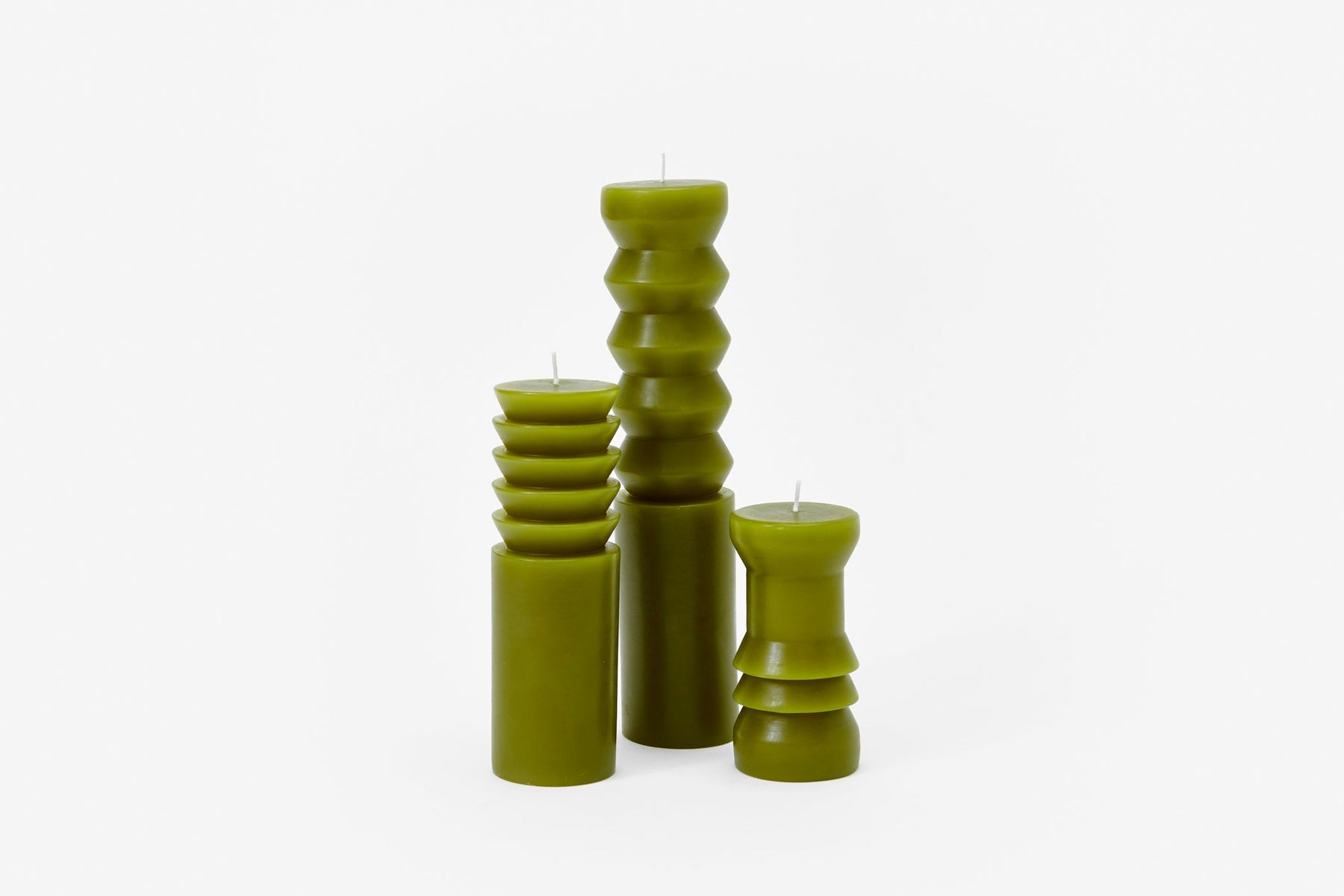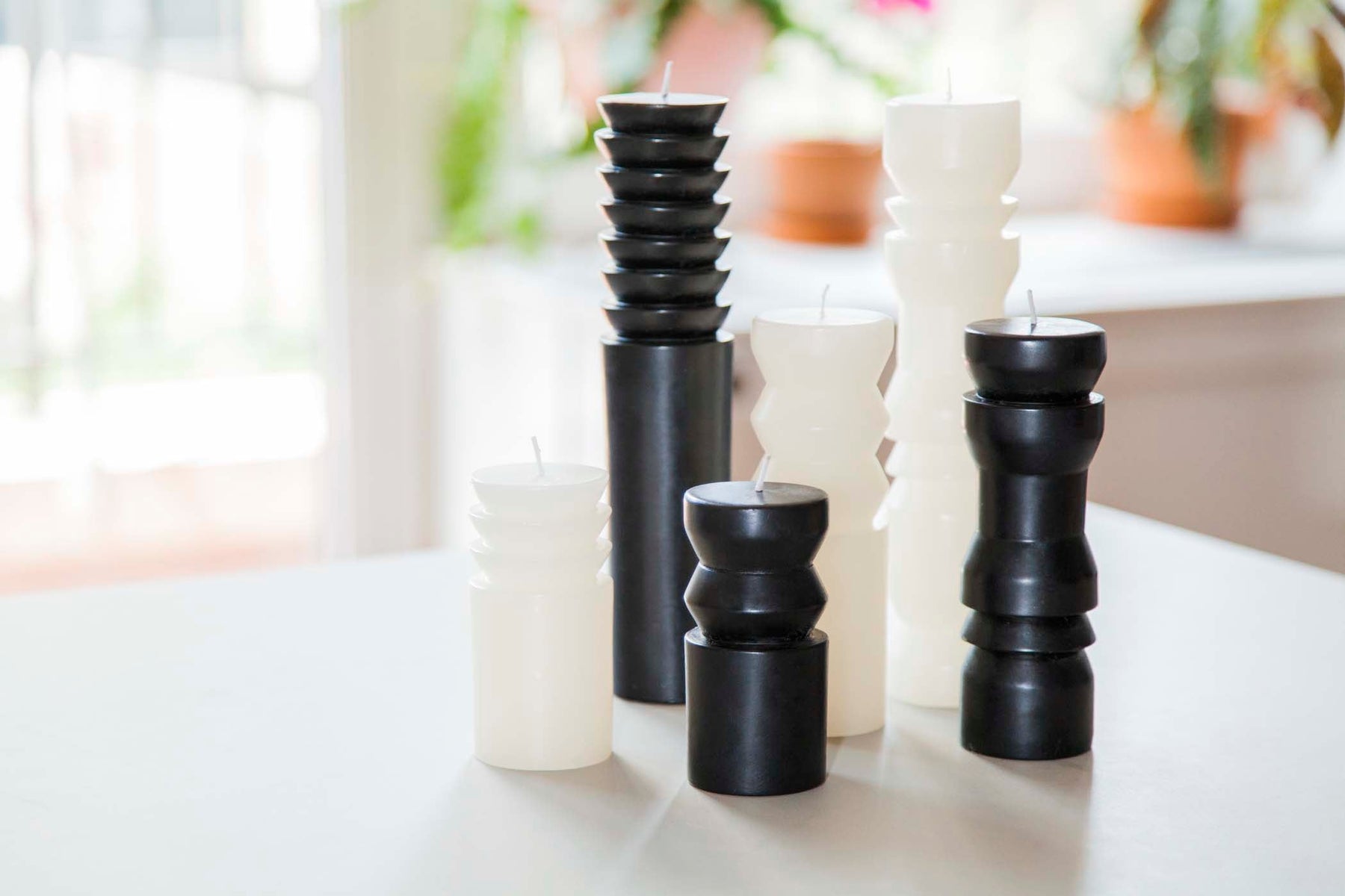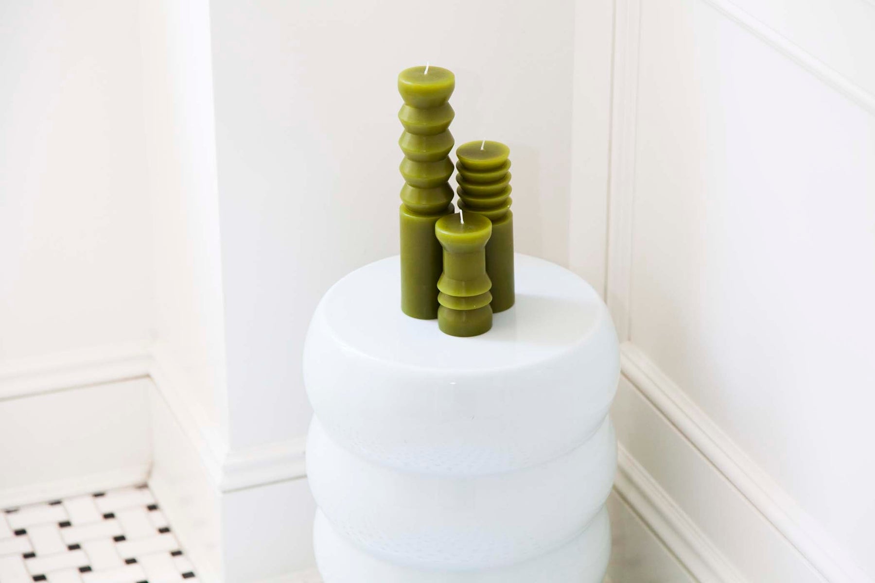 The Totem Candle is cast in unscented paraffin wax from forms originally created by turning beeswax on a lathe. Approximate burn time is 15/25/35 hours depending on the size of the candle. Do not leave burning candle unattended.
