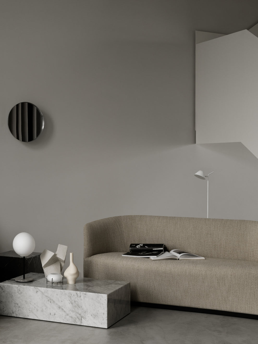 - Materials: Powder-Coated Steel, Brushed Brass with Lacquer, Glass/Marble