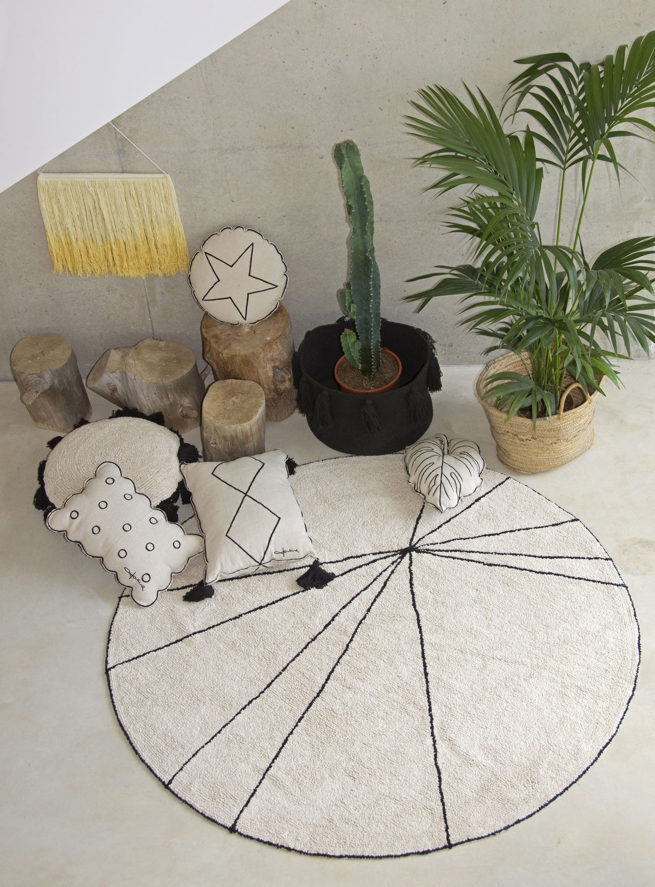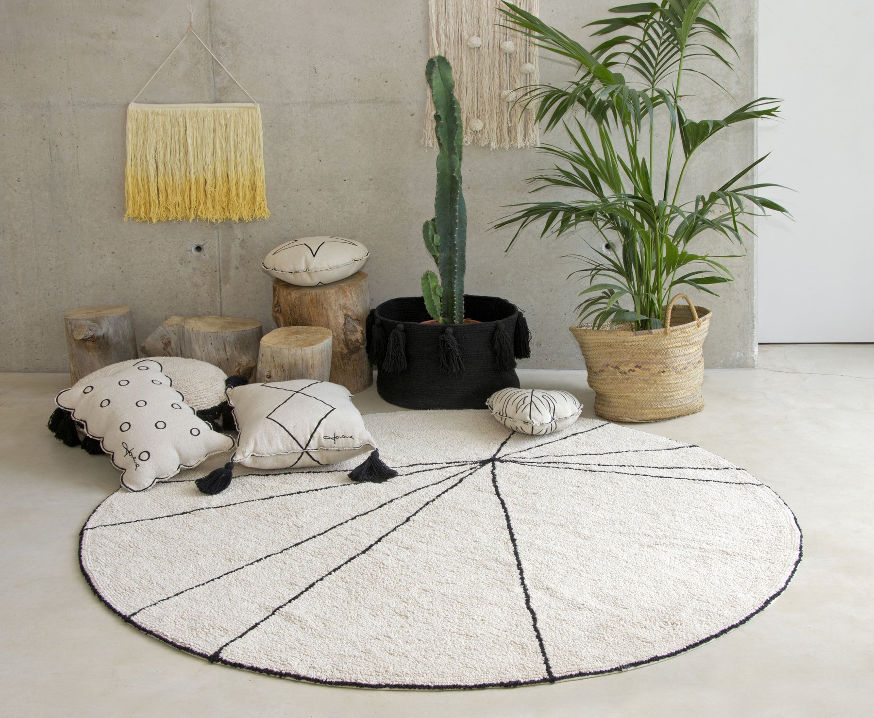 Inspired by Scandinavian style, the Trace rug is the perfect choice for decor involving simple lines, a contemporary and versatile concept. A round 100% cotton rug, washable in a domestic washing machine (7 kg), it is available in the fashionable colors of the season. Its design, shape and color make it suitable for any setting, from a baby's, girl's or boy's bedroom to a living room, bedroom, entrance hall, patio or garden. Hand-made by craftspeople, its natural dyes make it safe to use and, being made of cotton, it is light, pliable and soft. It can be combined with Bereber rugs, Square cushions or anything with a natural base, Pebbles baskets and Geometric wall hangings.