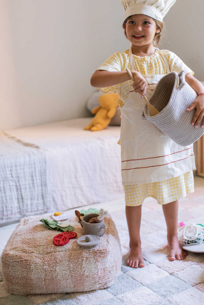What’s cooking for today? Lorena’s kitchen has everything kids need to whip up something delicious! And what could be more fun than pretend cooking with this cute textile food set including ingredients for a veggie taco! Looks like their dinner is already taken care of!