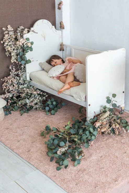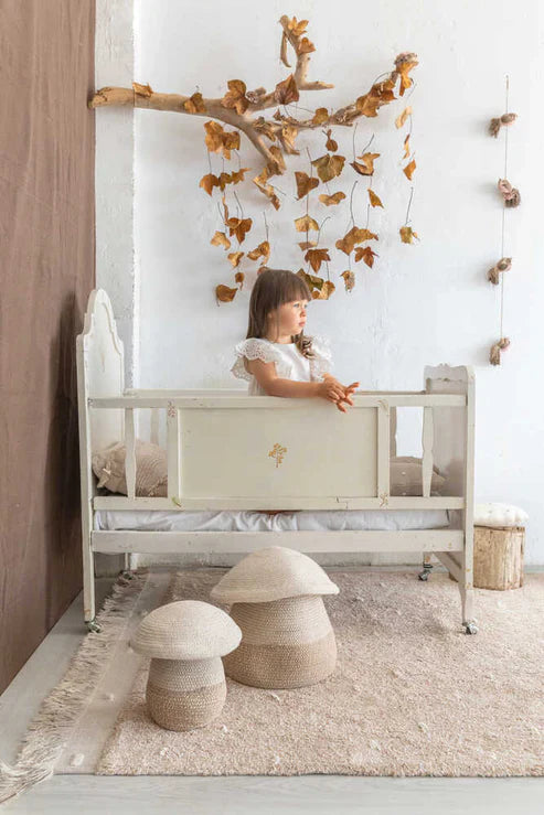 The forest symphony inspires this design from our Cotton Woods collection, scattered with longer tufts resembling grass spikes. Handcrafted details like this make it a unique washable rug, rimmed with embroidered quotes and frayed fringes. It's time to snuggle up in the comfort of your living room and enjoy 'The Cotton Song of the Woods'.